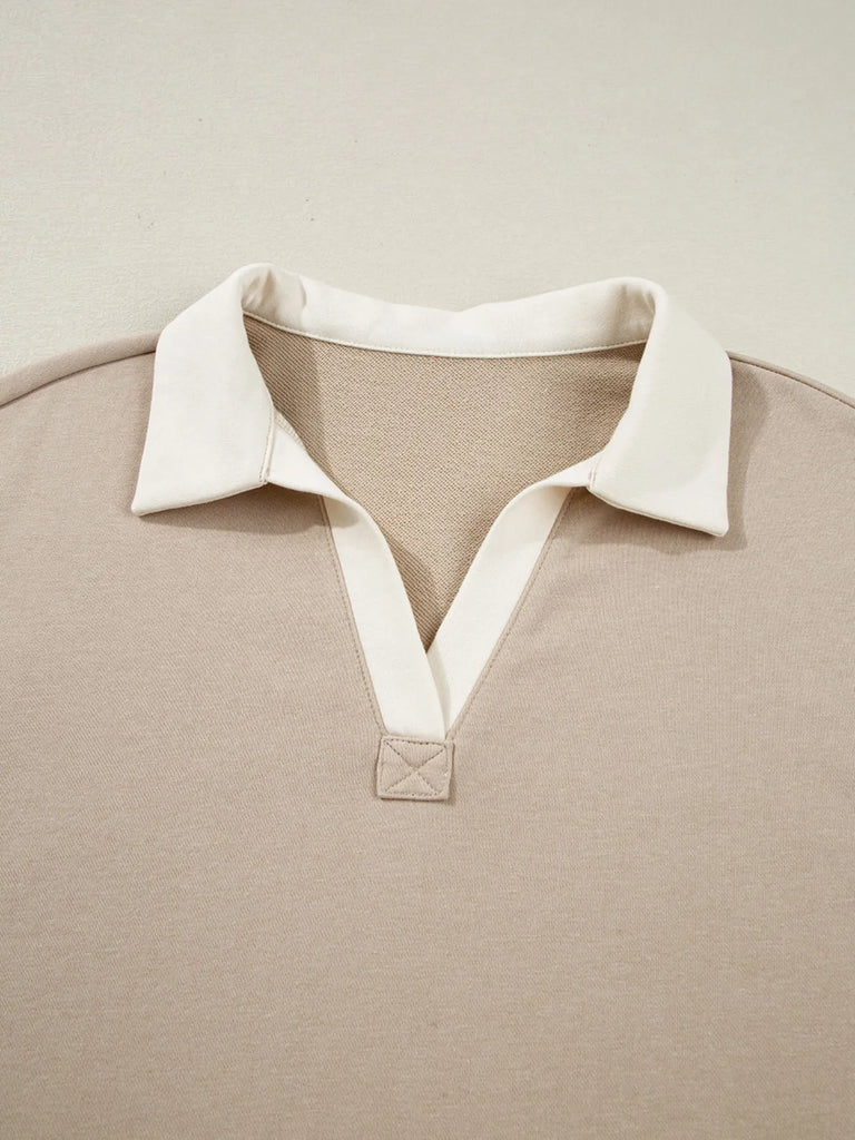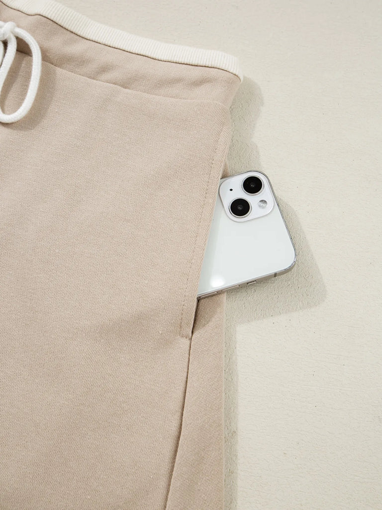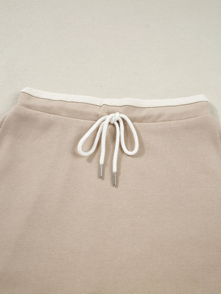 Contrast Collared Neck Top and Drawstring Mini Skirt Set