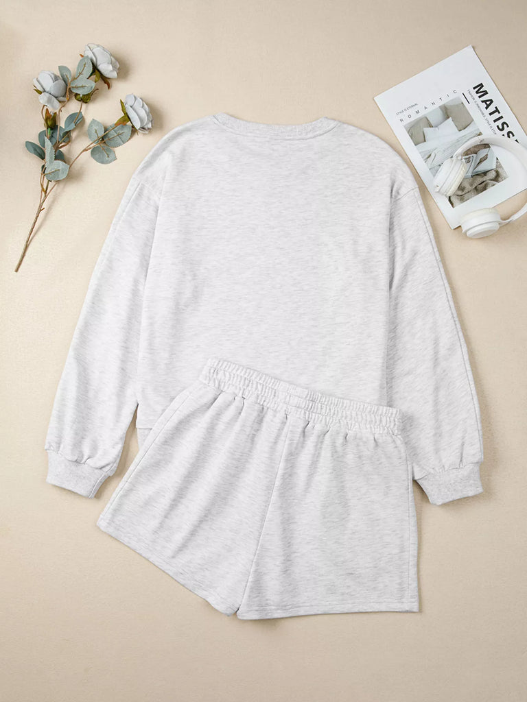 ow Embroidered Detail Puff Sleeve Top and Shorts 2pcs Set
