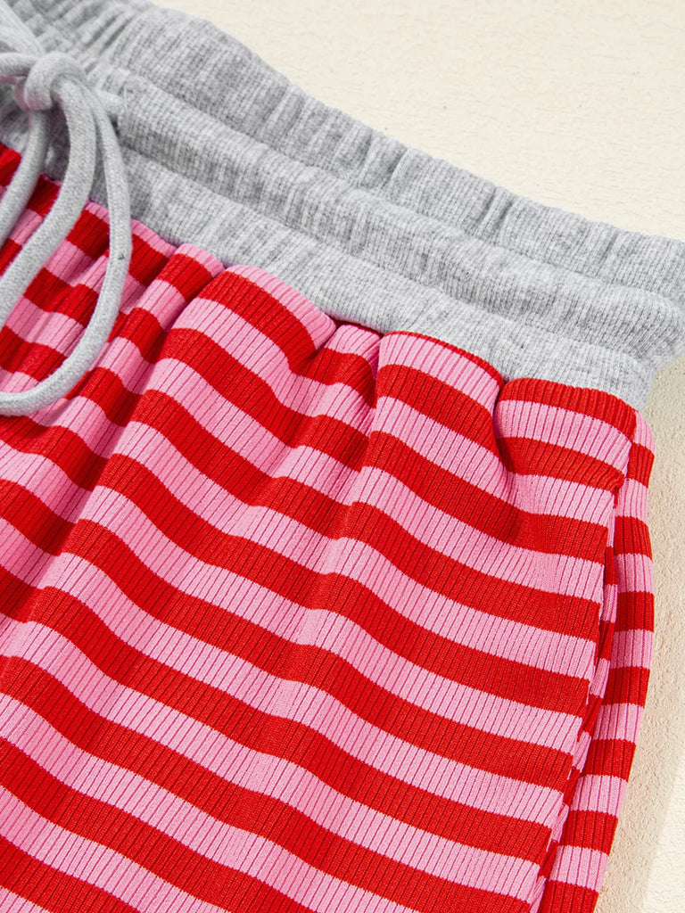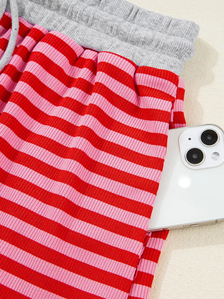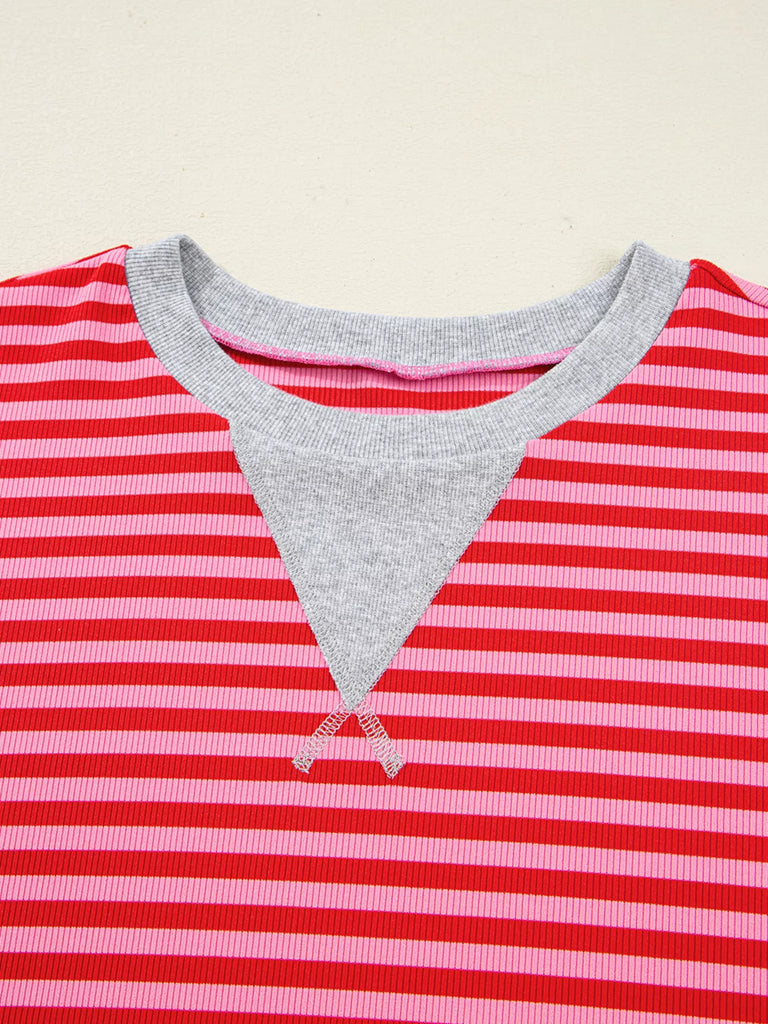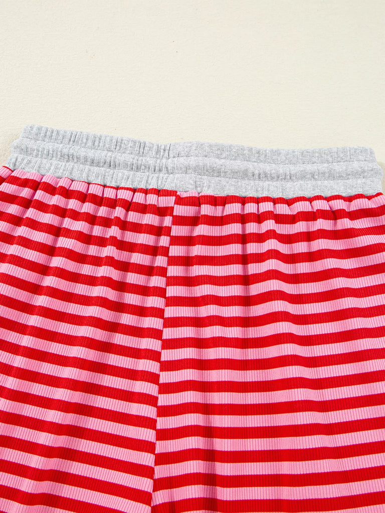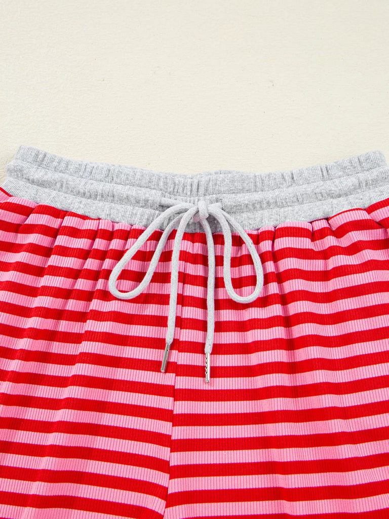 Stripe Drop Shoulder Baggy Top and Shorts Casual Set