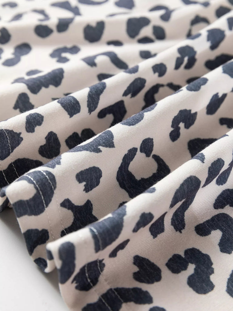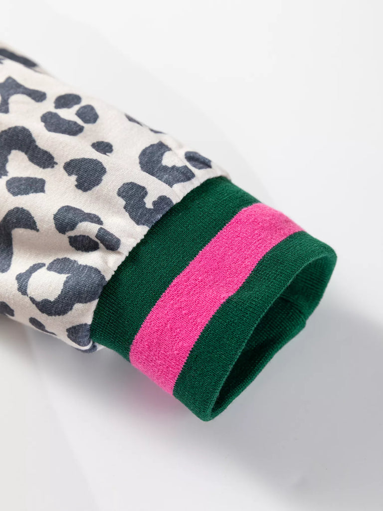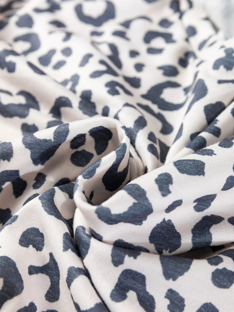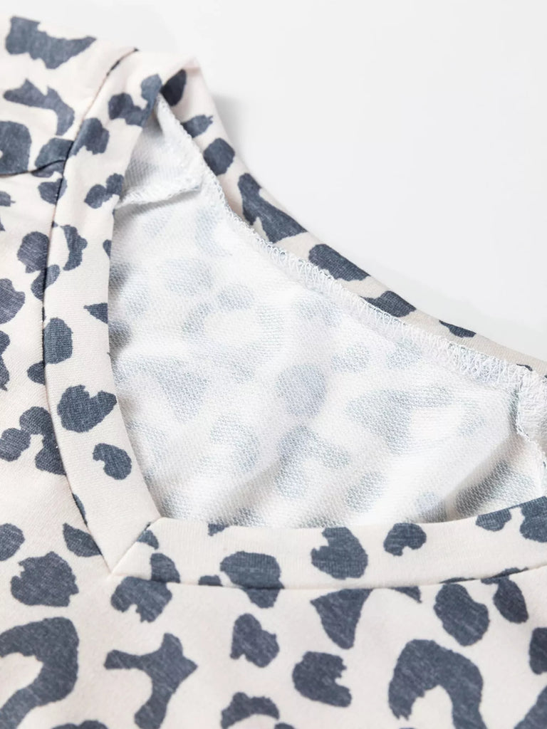 V Neck Leopard Long Sleeve Top Striped Webbing Patchwork Drawstring Pant Set