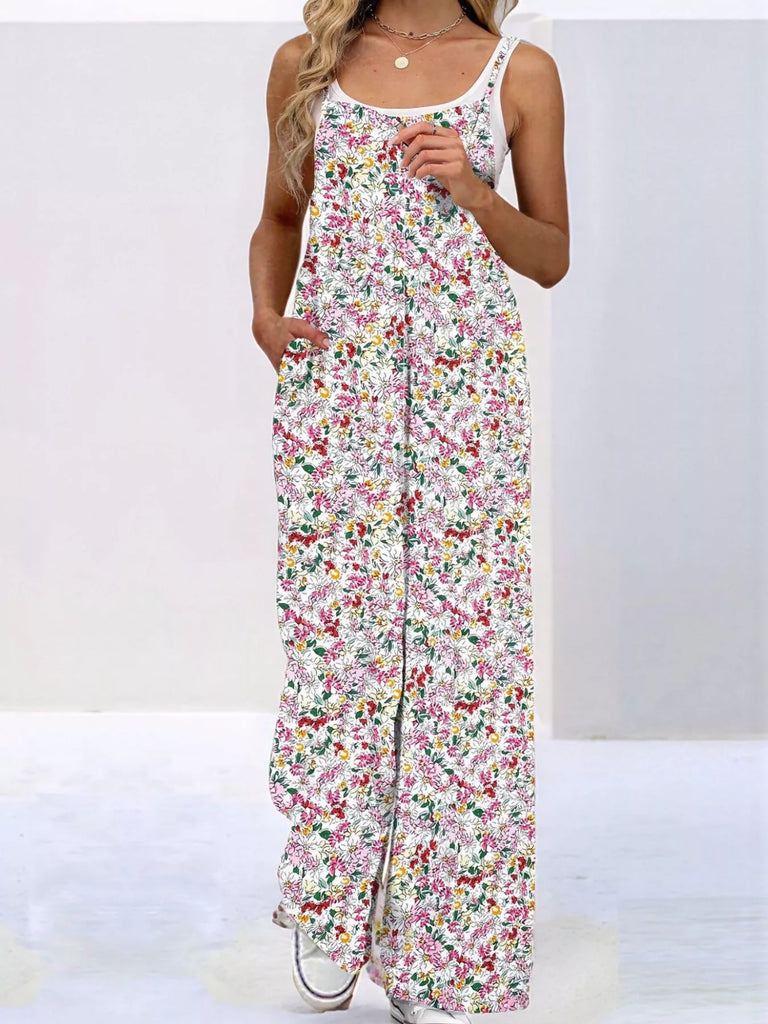 Full Size Floral Print Wide Leg Casual Jumpsuit