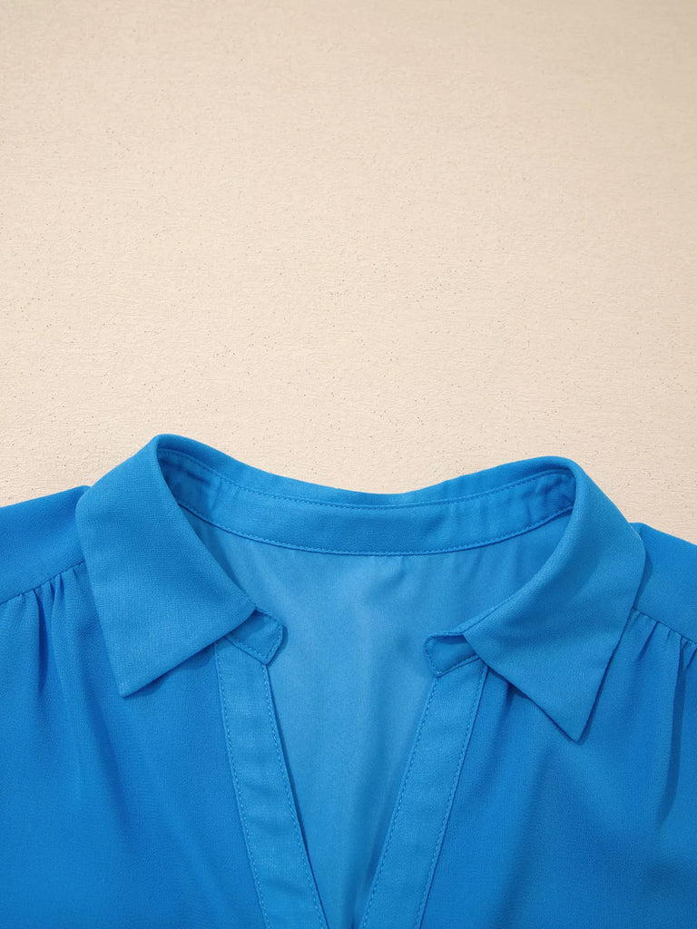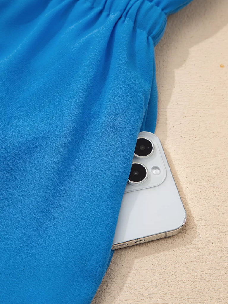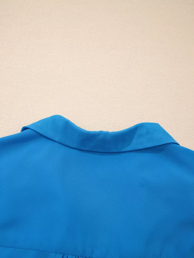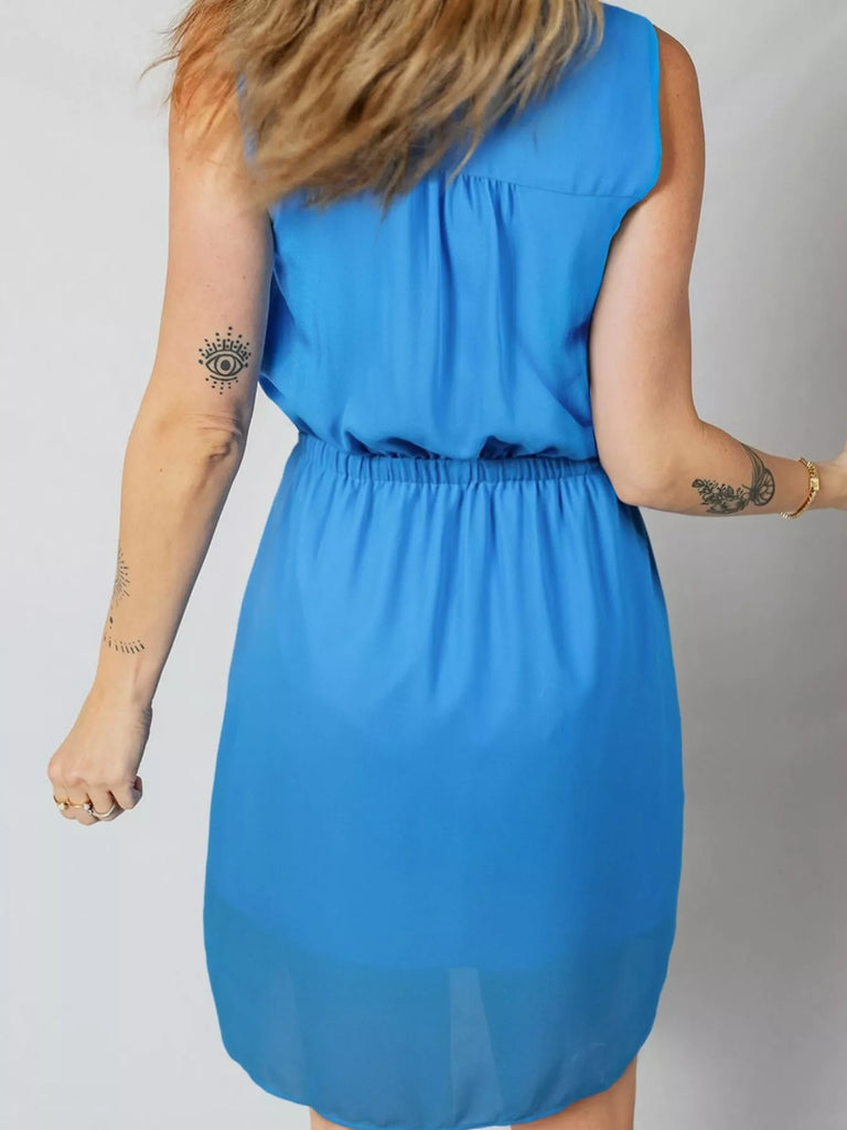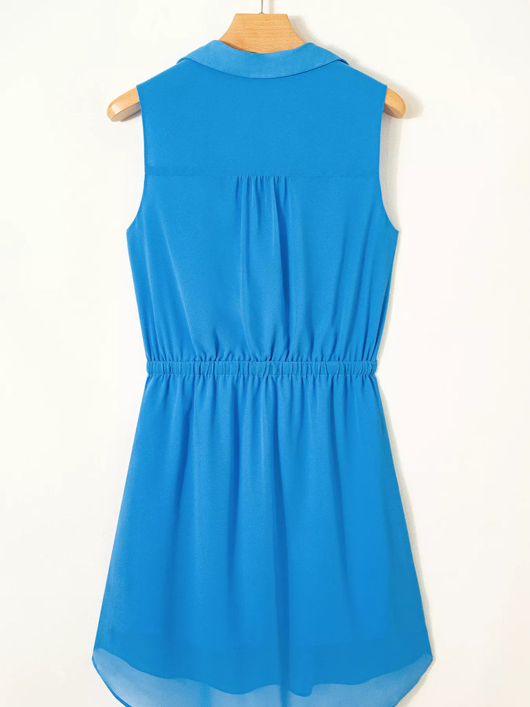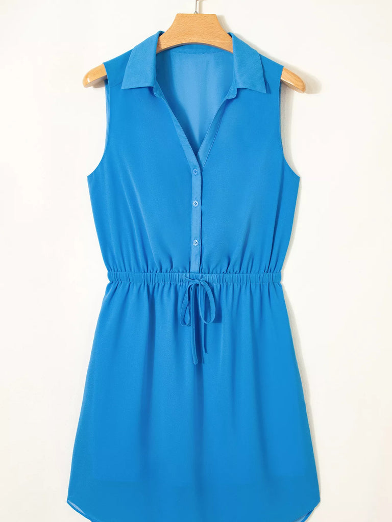 Half Buttons Collared Elastic Waist Sleeveless Shirt Dress