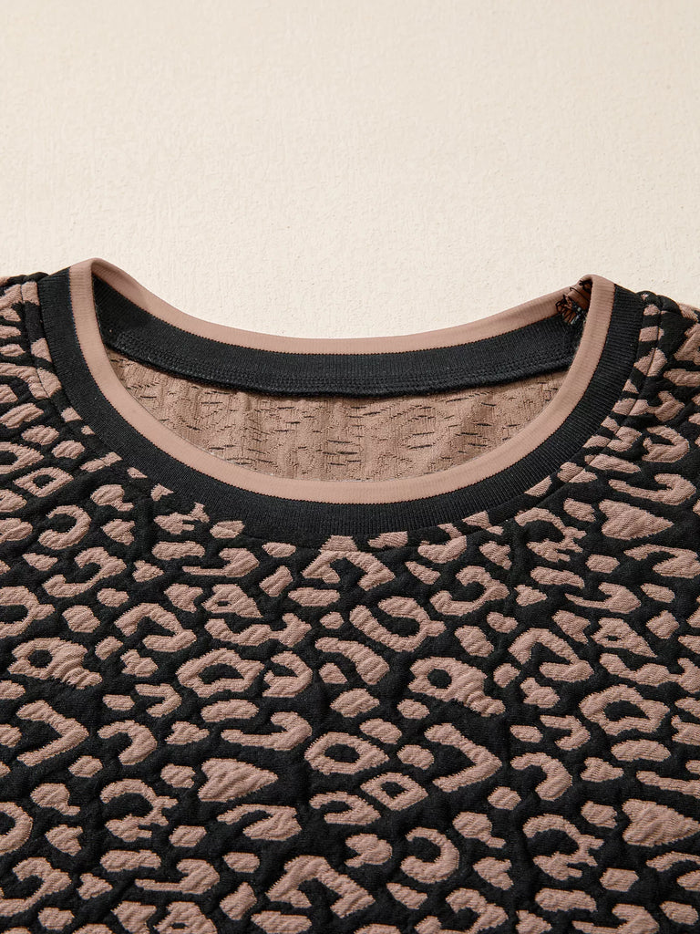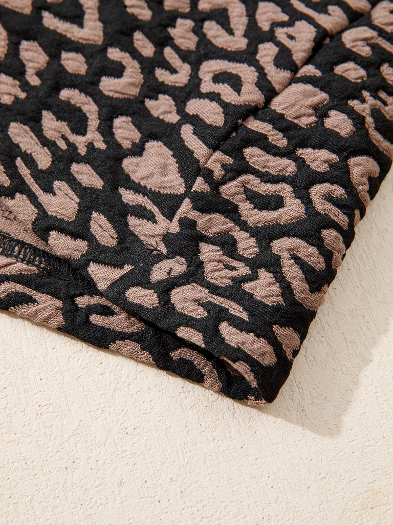 Leopard Print Bubble Sleeve Shift Mini Dress