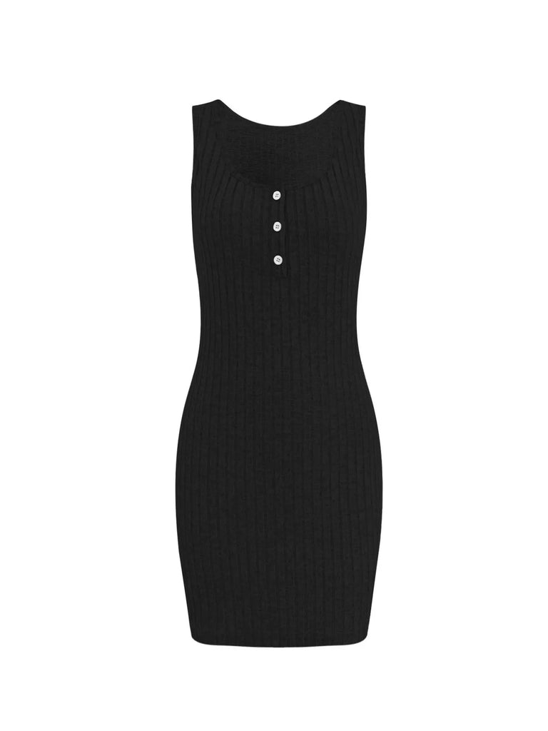 Ribbed Button Front Dress and Cardigan Sweater Set