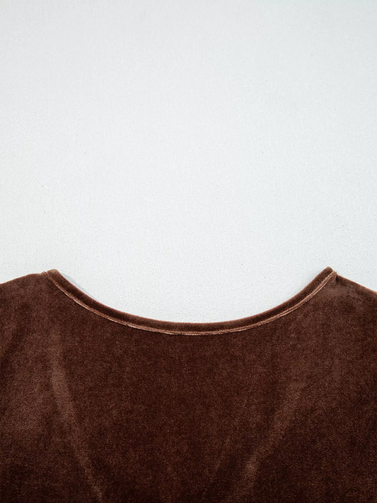 Solid Color Velvet V Neck Long Sleeve Tiered Mini Dress