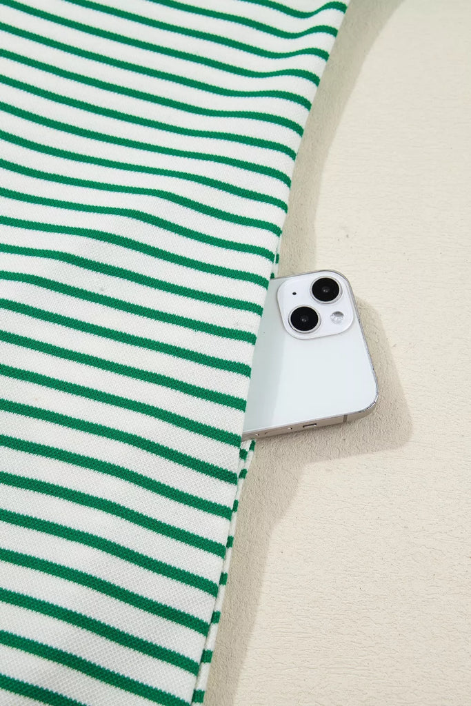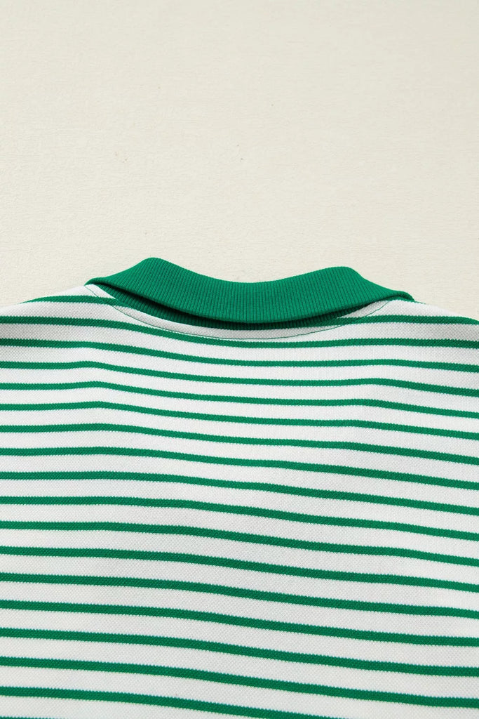 Stripe Quarter Zip Polo Collar T Shirt Dress with Pockets