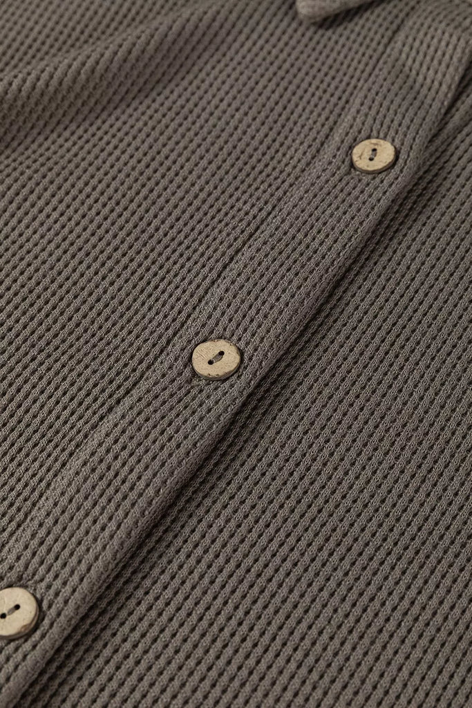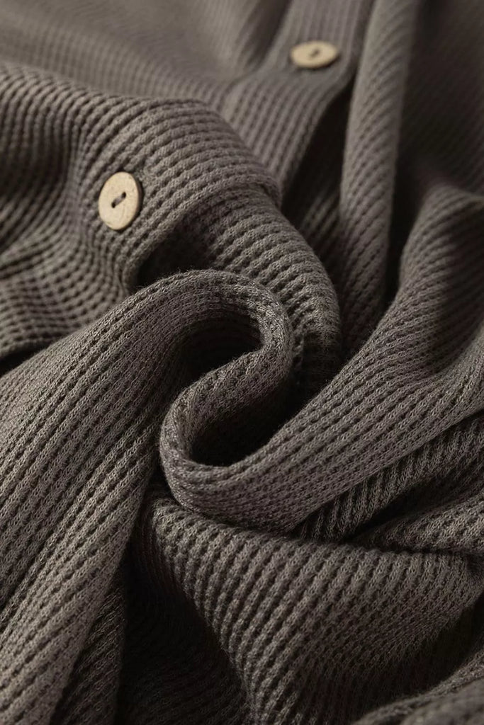 - Features:Waffle-Knit,Pocketed,Buttoned