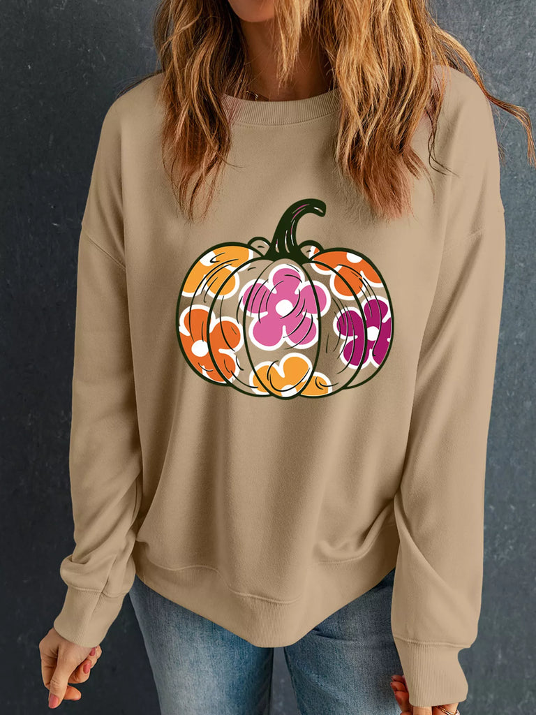 Halloween Floral Pumpkin Graphic Drop Shoulder Sweatshirt