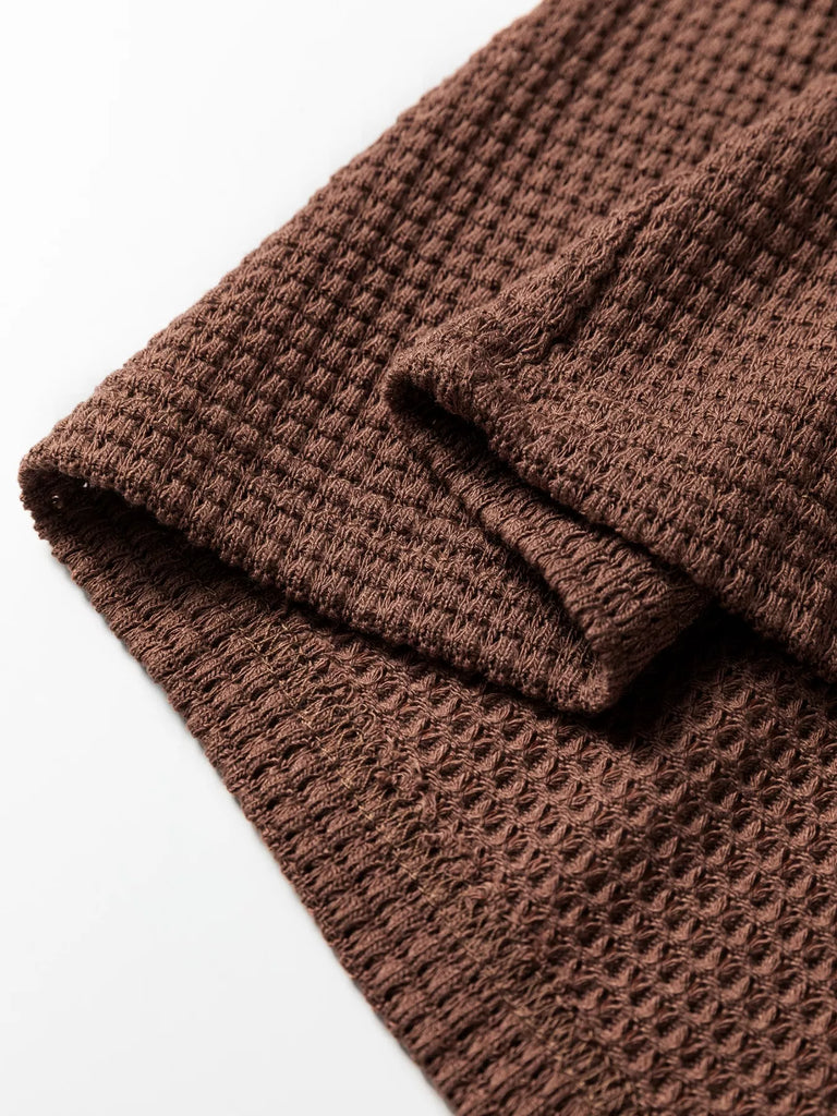 - Features:Buttoned,Drawstring,Waffle-Knit
