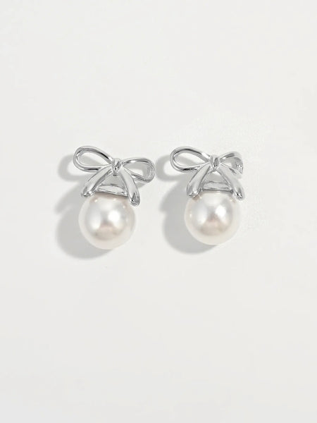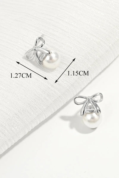 925 Sterling Silver Pearl Bow Earrings
