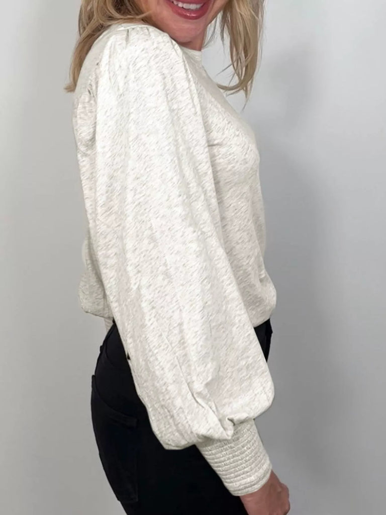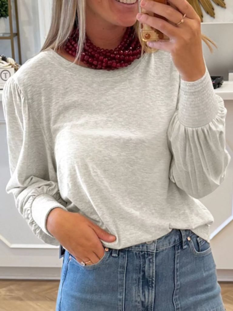 Casual Round Neck Long Sleeve Smocked Cuff Top