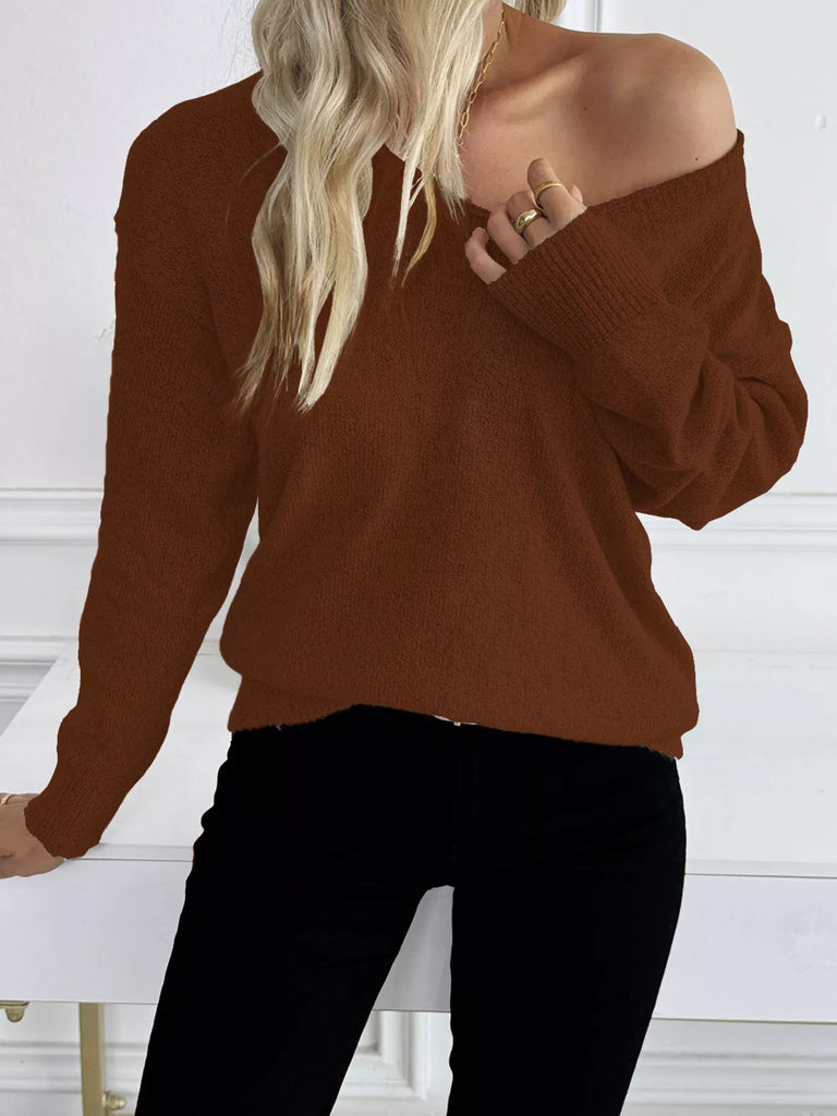 Casual V-Neck Drop Shoulder Sweater