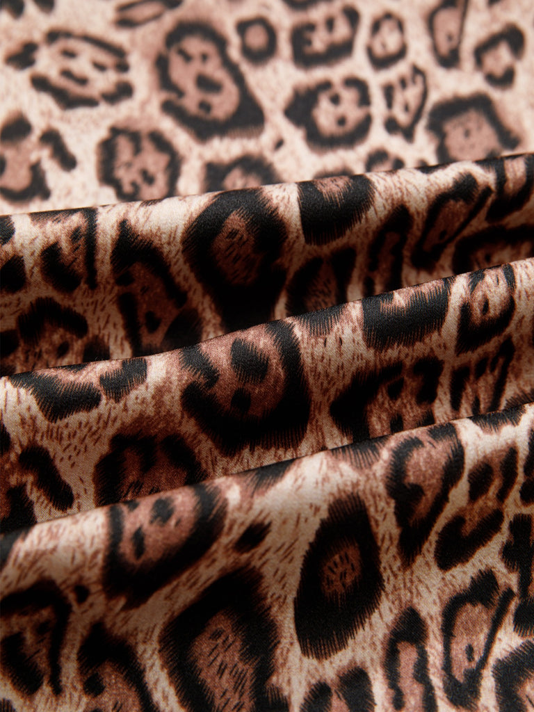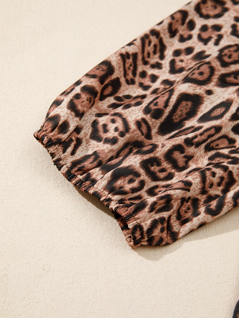Leopard Bow Tie Puff Sleeve Blouse