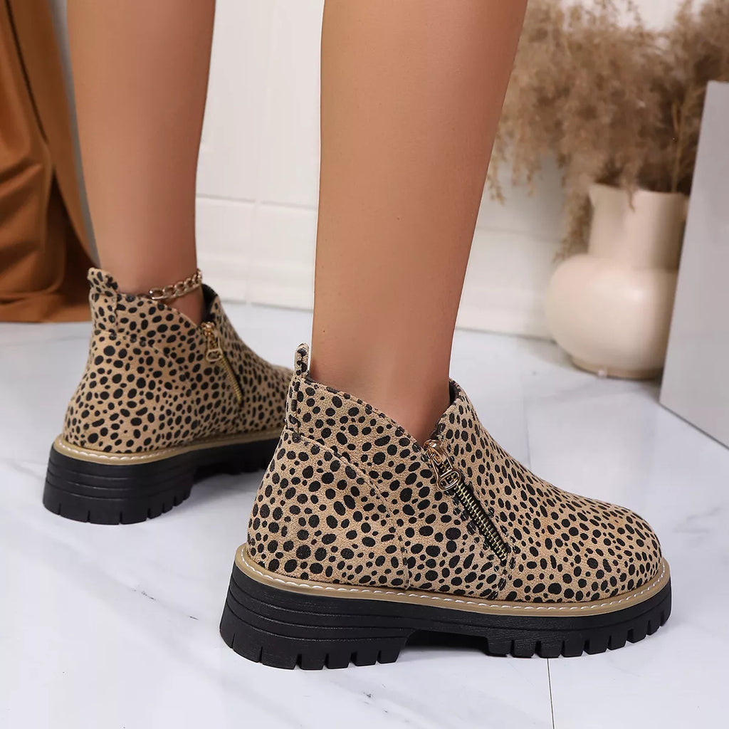 Leopard Print Ankle Boots with Zipper