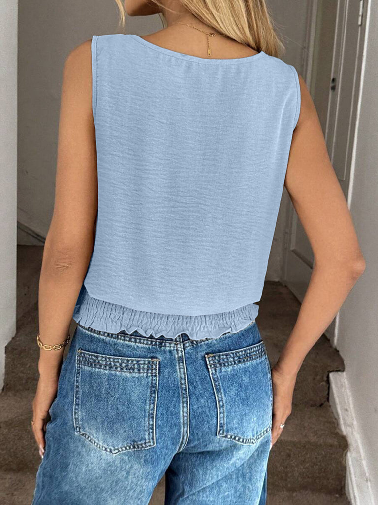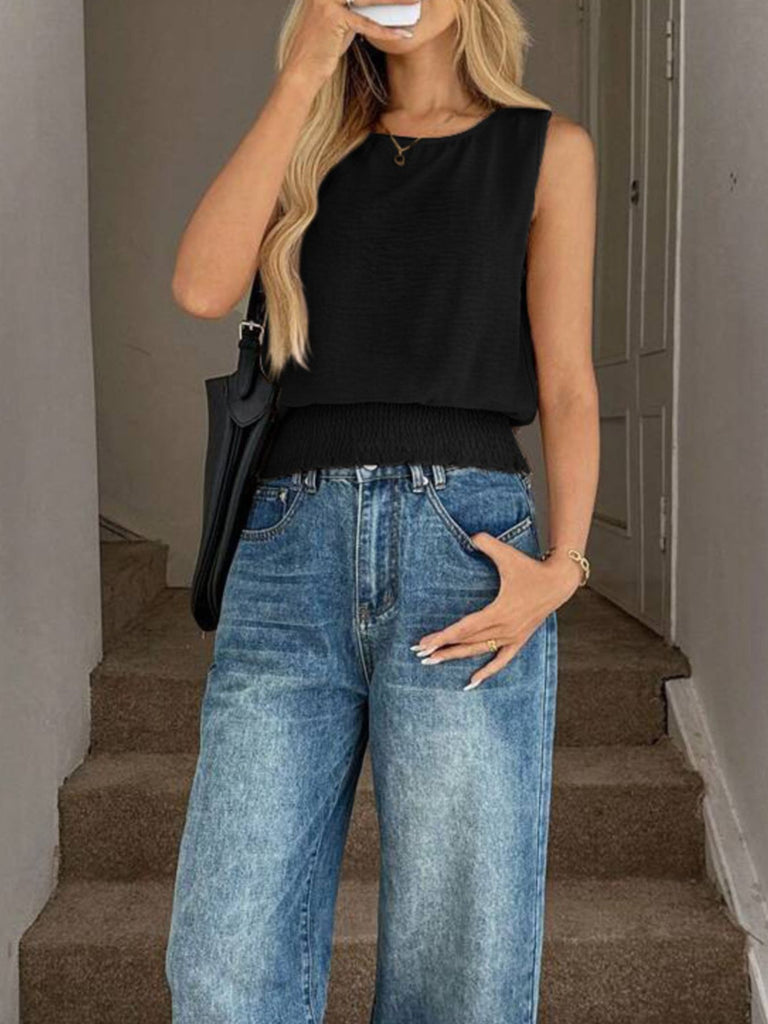 Smocked Waist Round Neck Tank