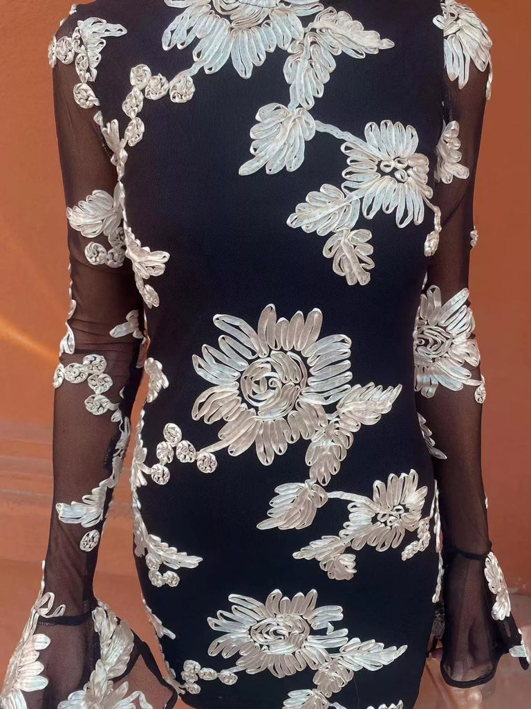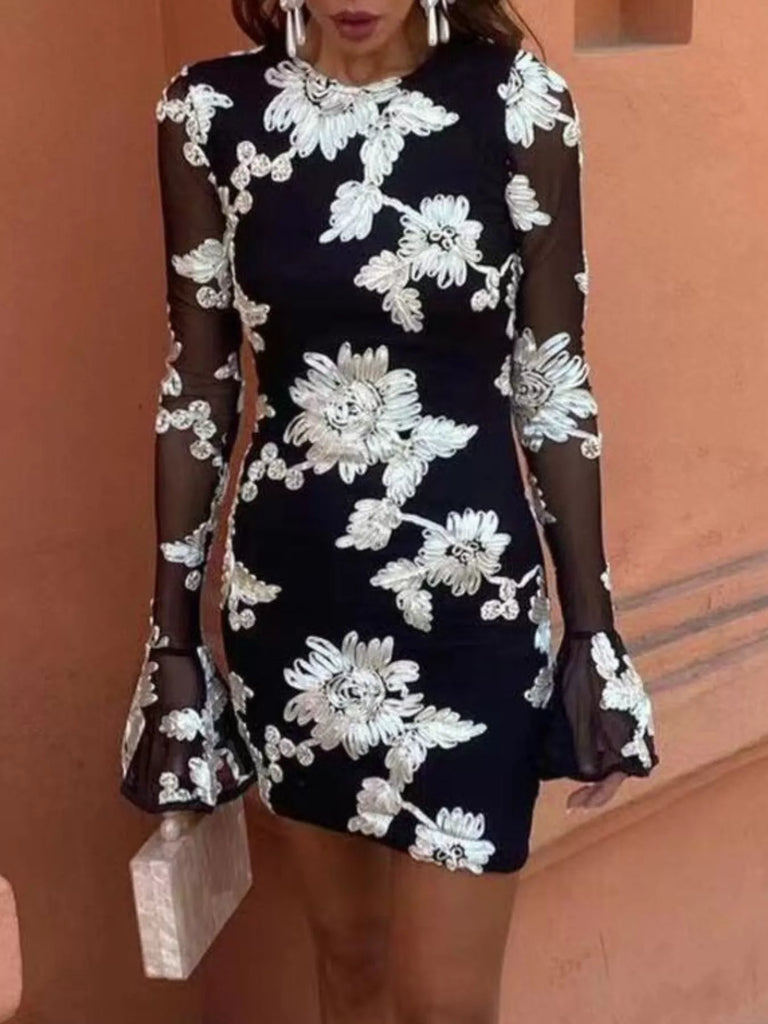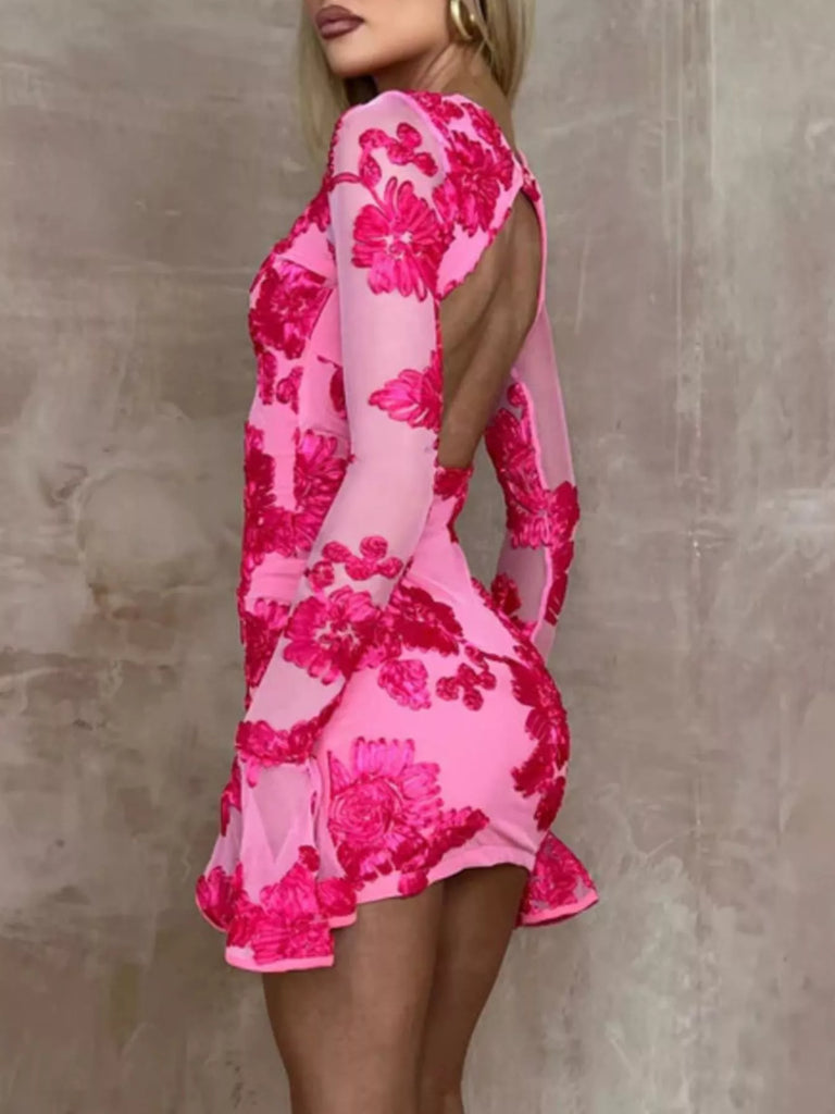 Floral Flounce Sleeve Mini Dress
