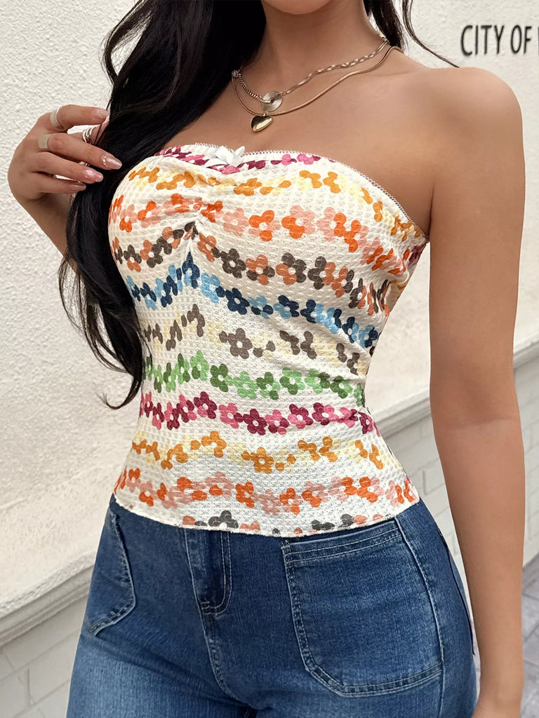 Floral Ruched Tube Top
