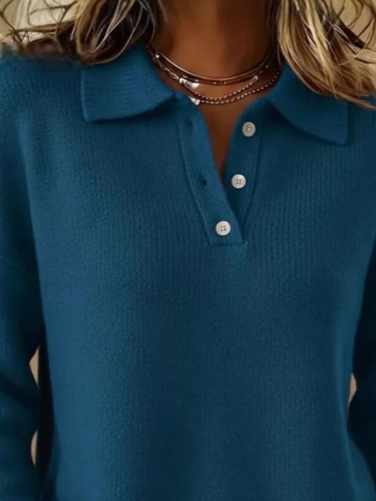 Full Size Button Detail Drop Shoulder Sweater