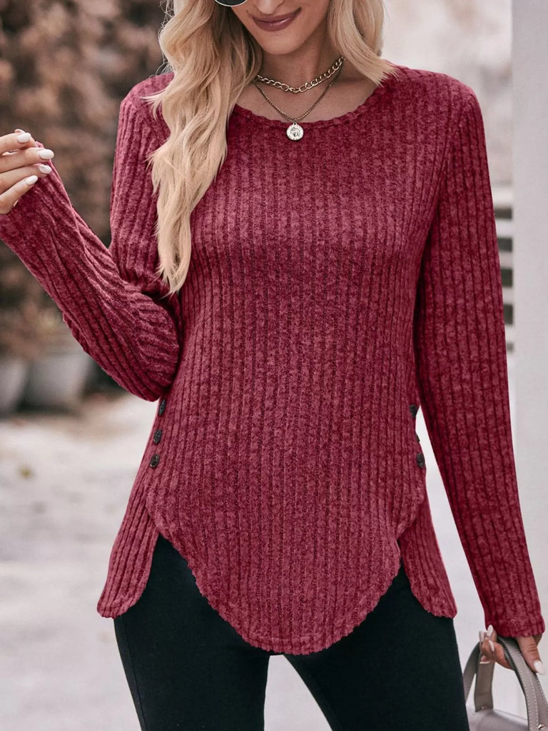 Ribbed Knit Long Sleeve T-Shirt