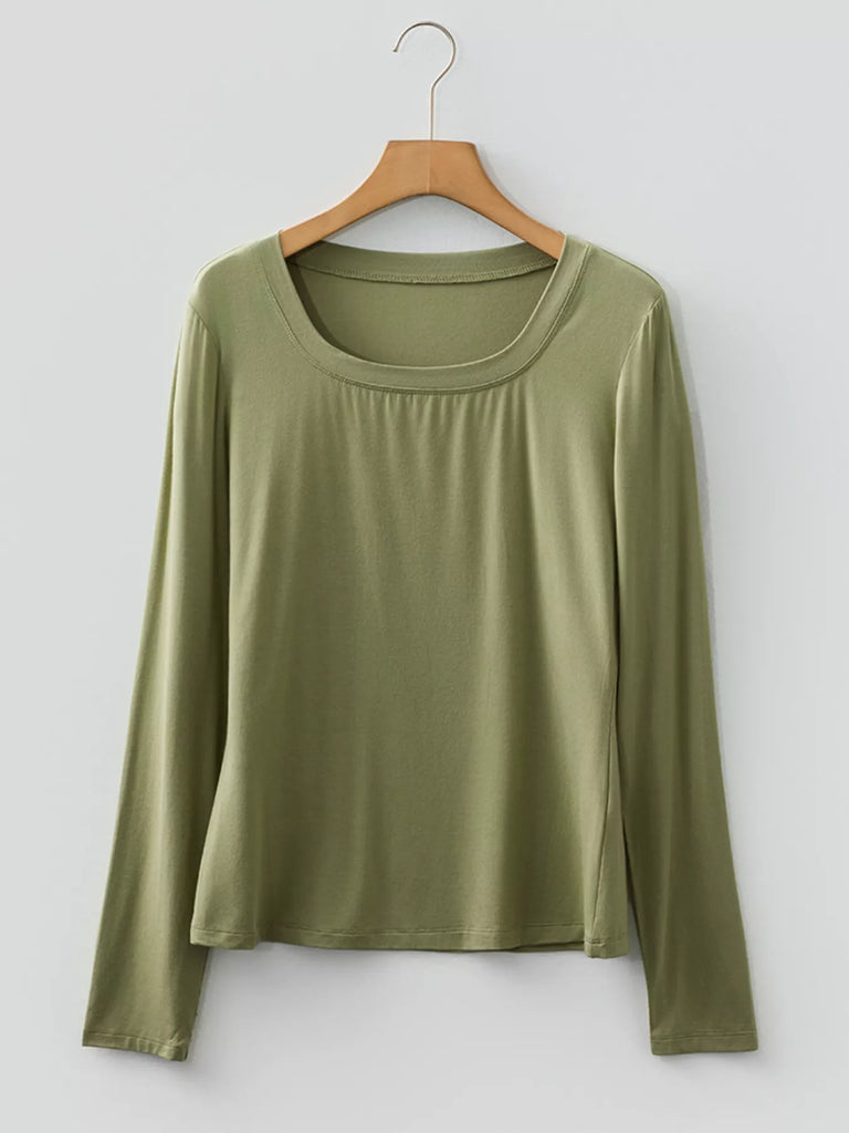 Solid Color Long Sleeve Fitted Top