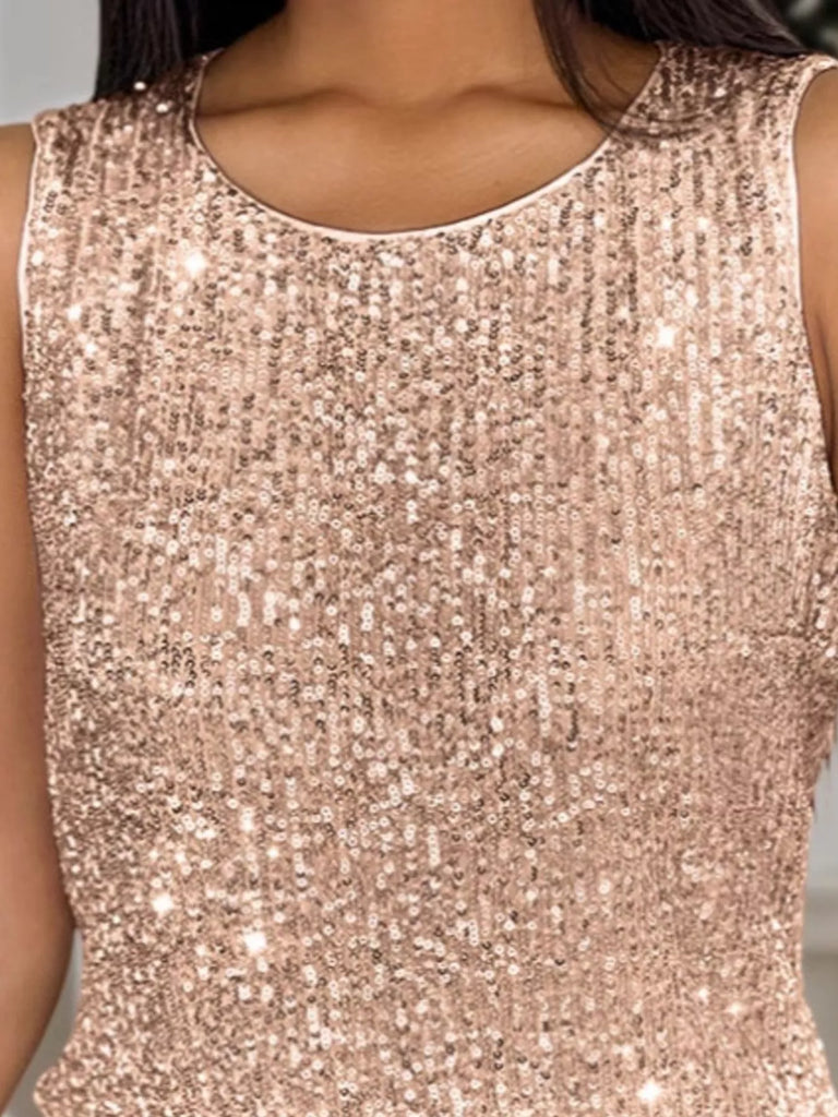 Sequin Round Neck Tank Top