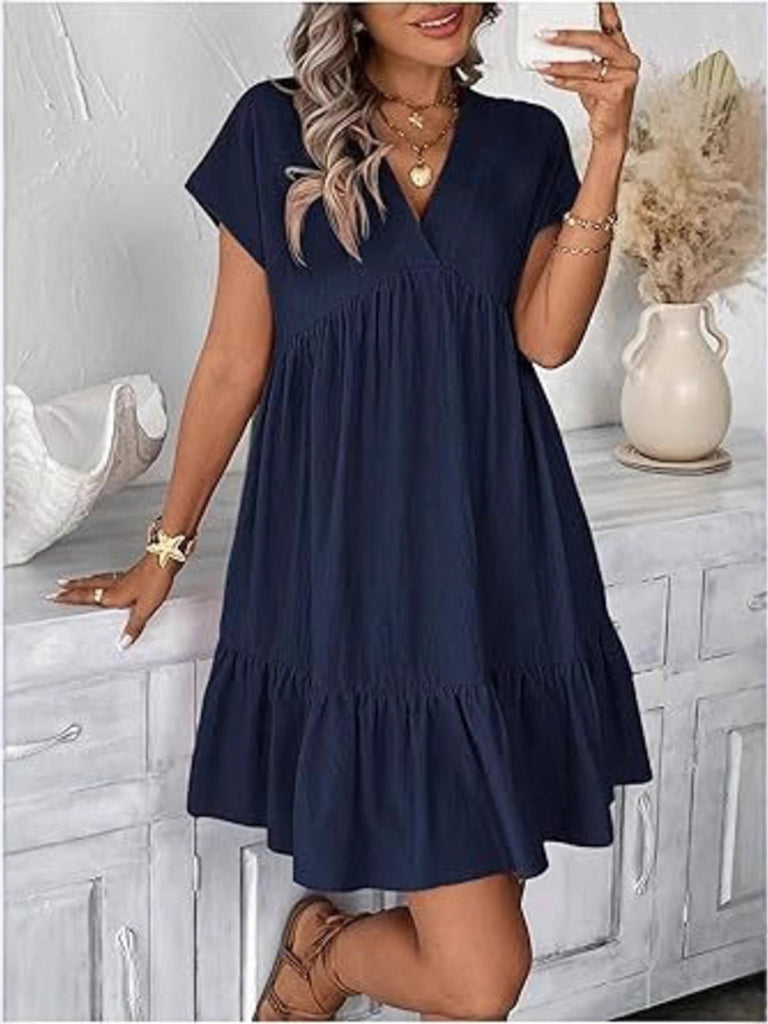 Short Sleeve Ruffle Hem Mini Dress