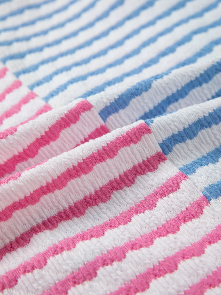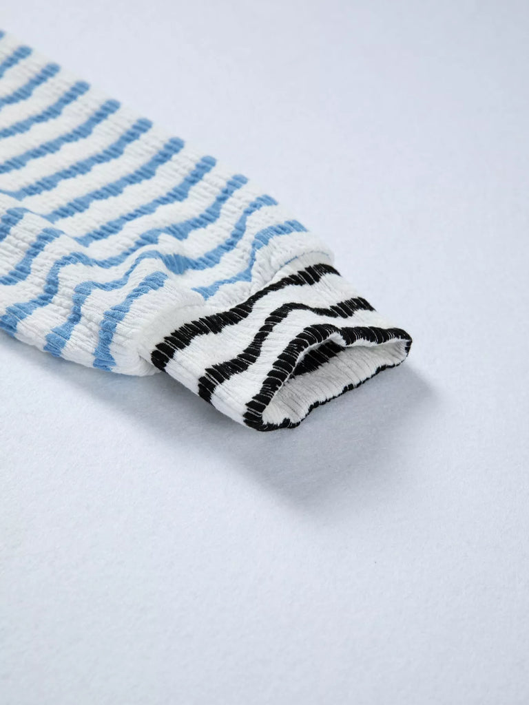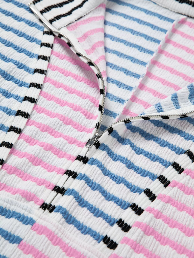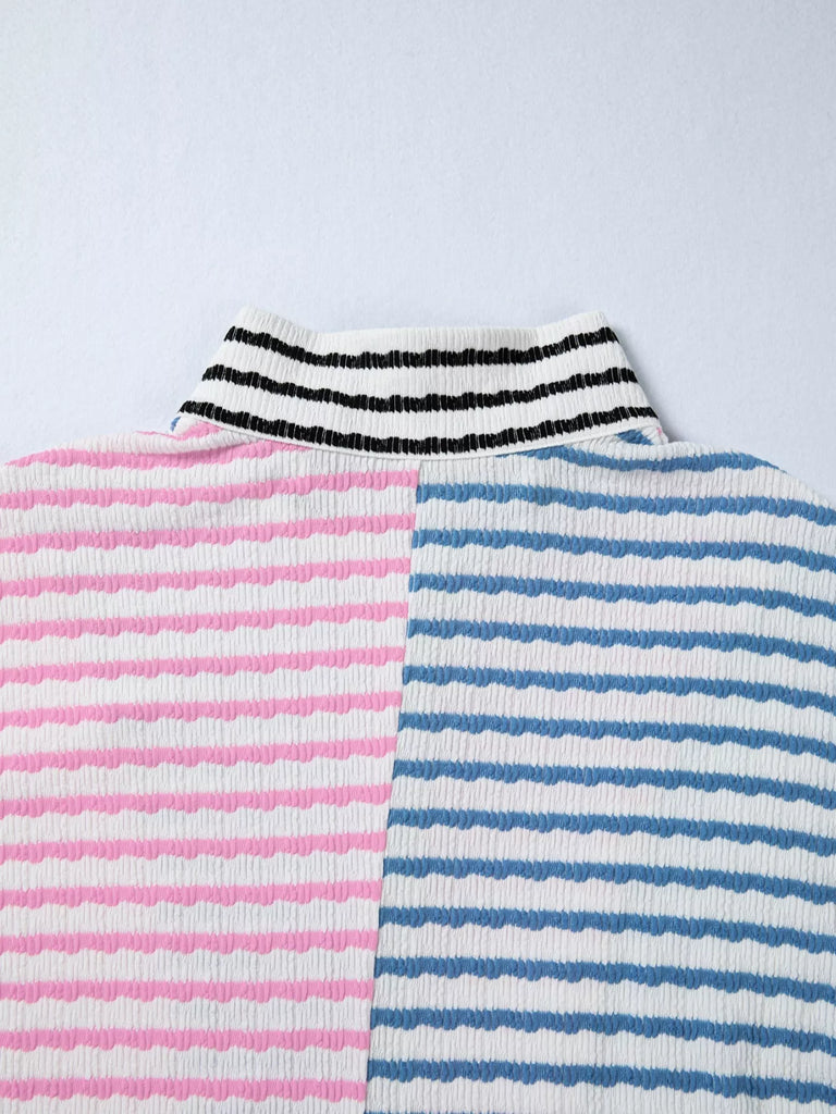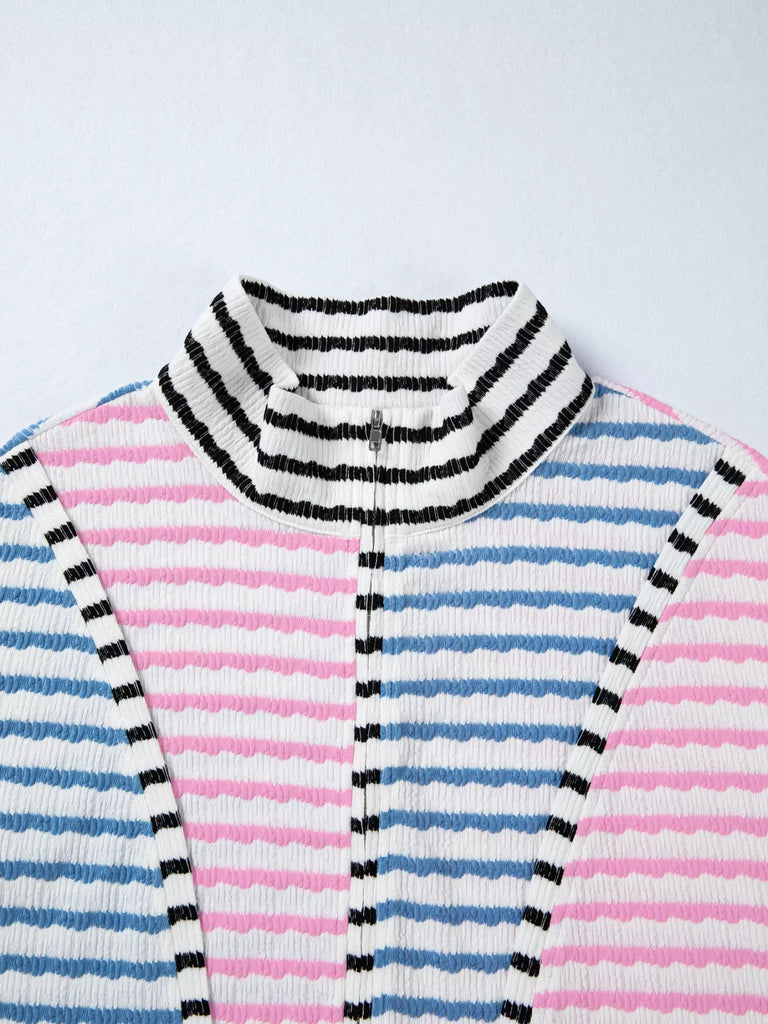 Striped Color Block Patchwork Half Zip Drop Shoulder Long Sleeve Top
