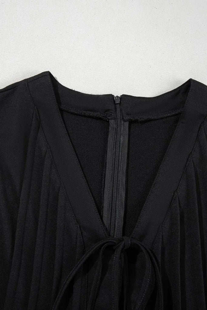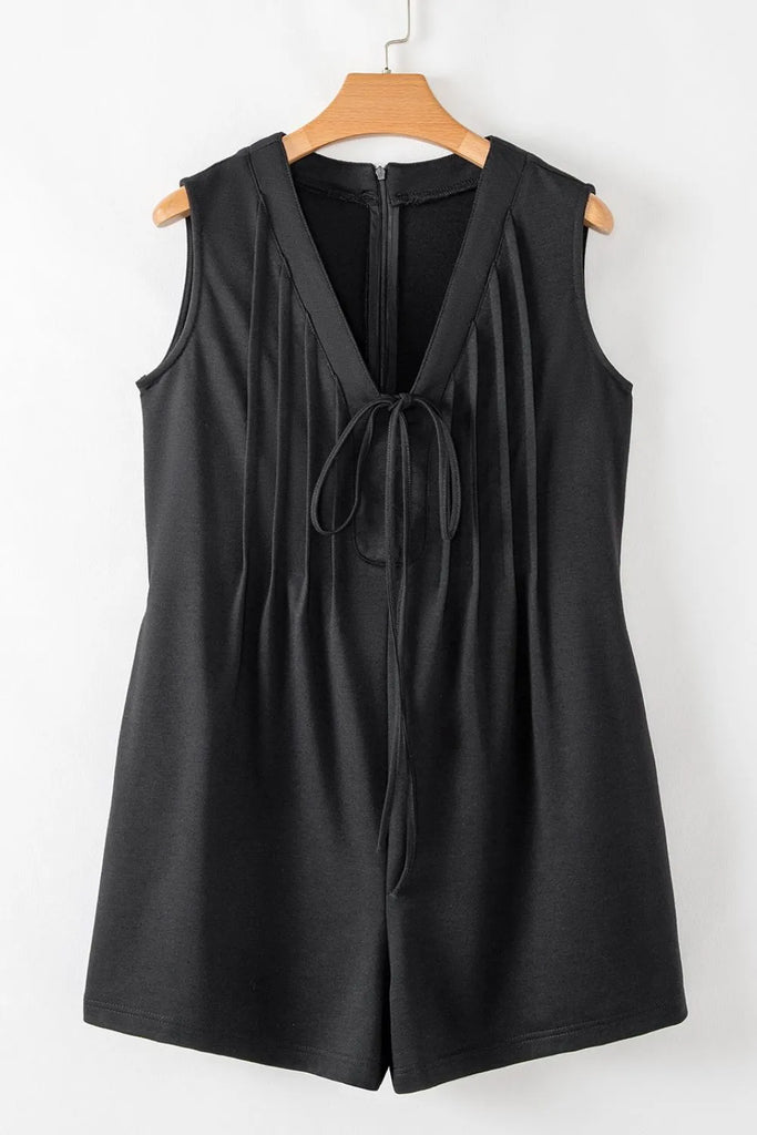 Tie V Neck Pintuck Sleeveless Loose Romper