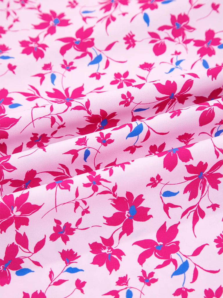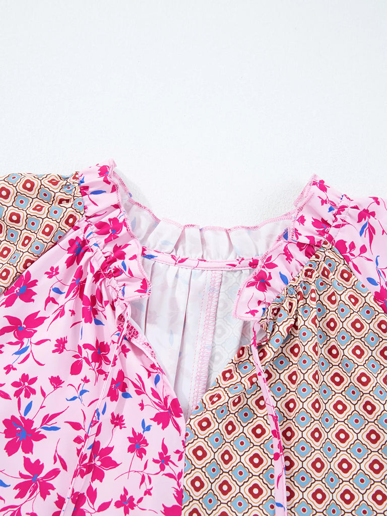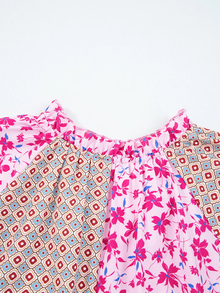 Boho Mixed Floral Drop Shoulder Bubble Sleeve Blouse