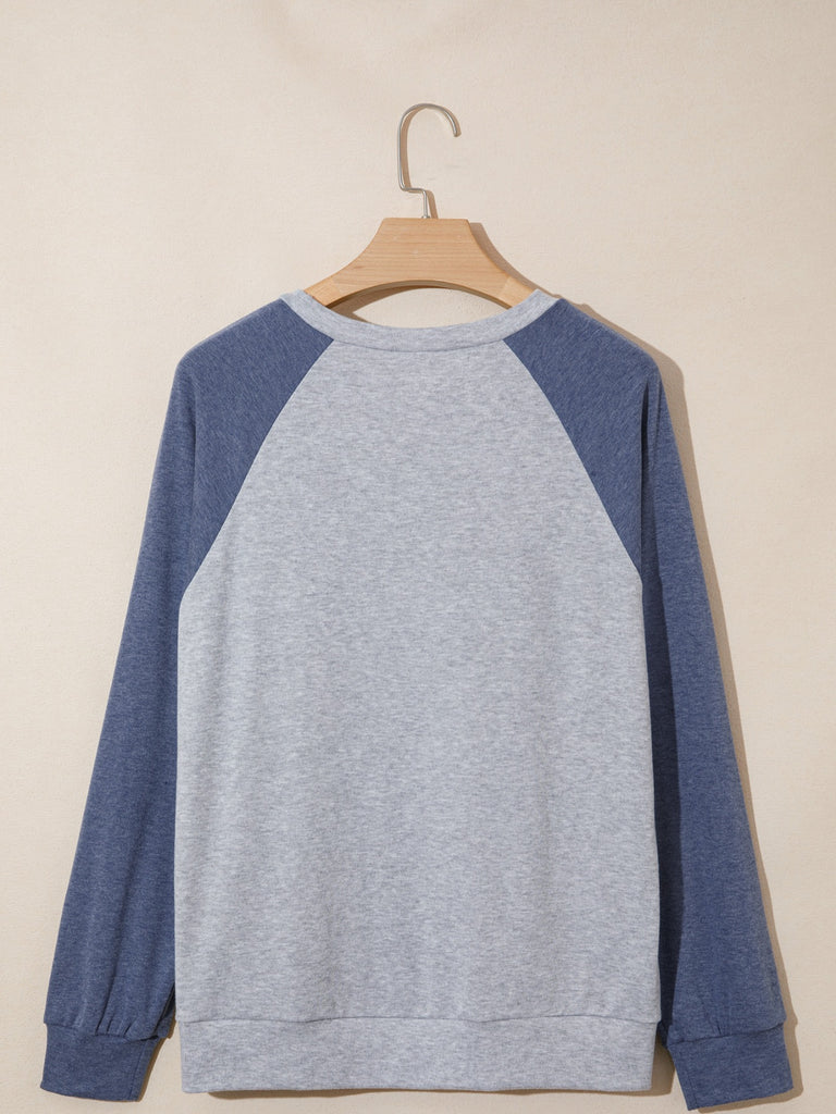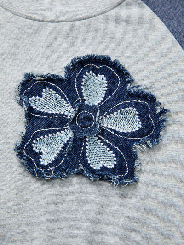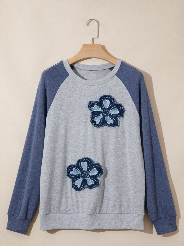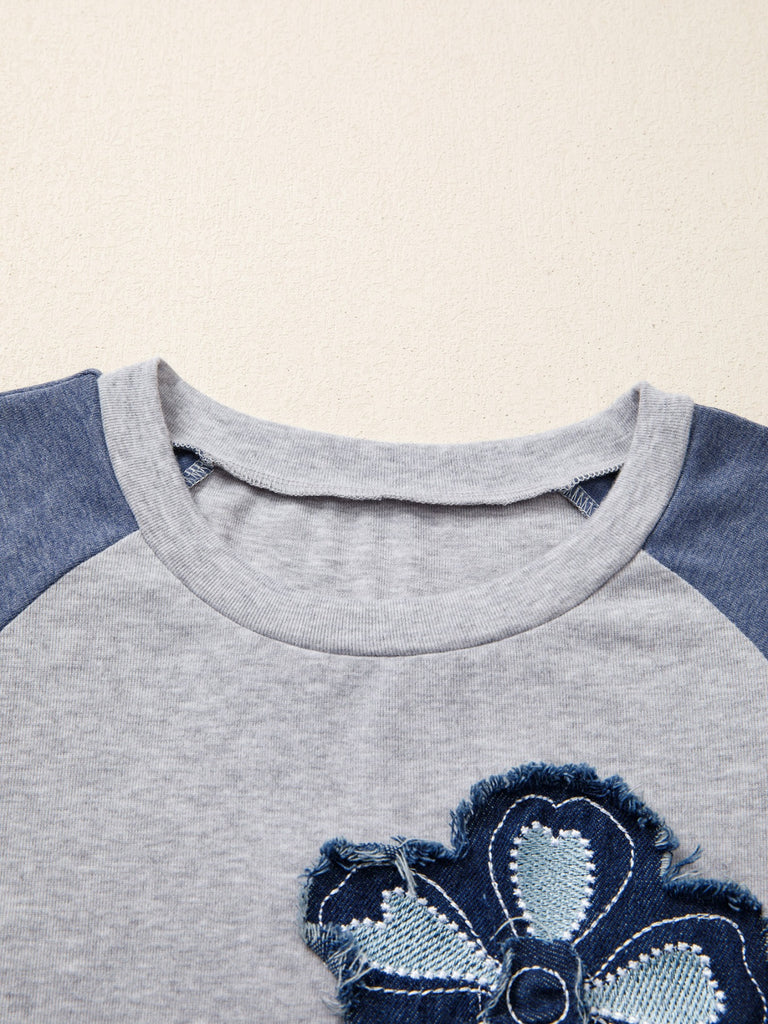 Color Block Flower Embroidered Patch Graphic Raglan Long Sleeve Top