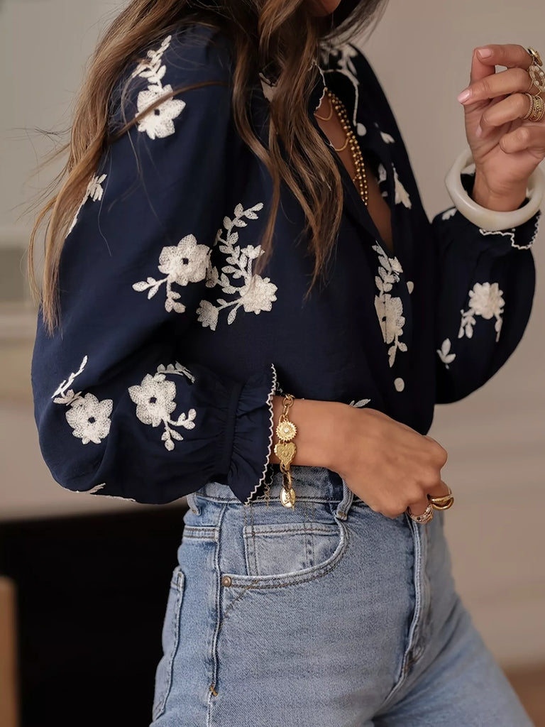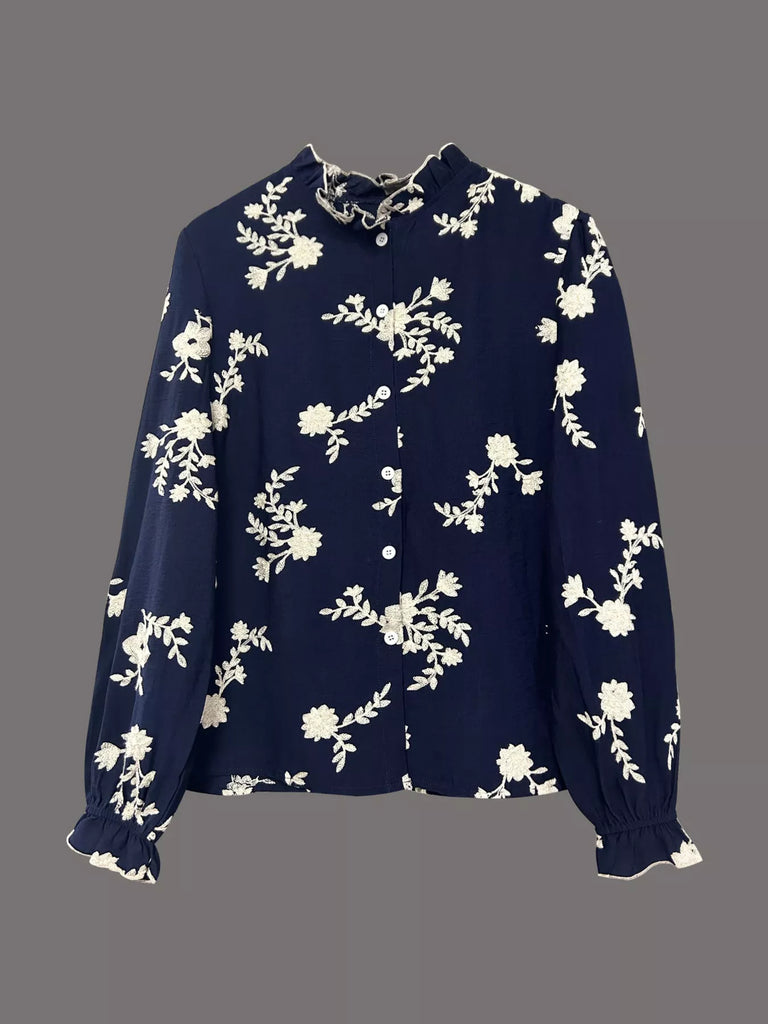 Floral Embroidered Long Sleeve Shirt