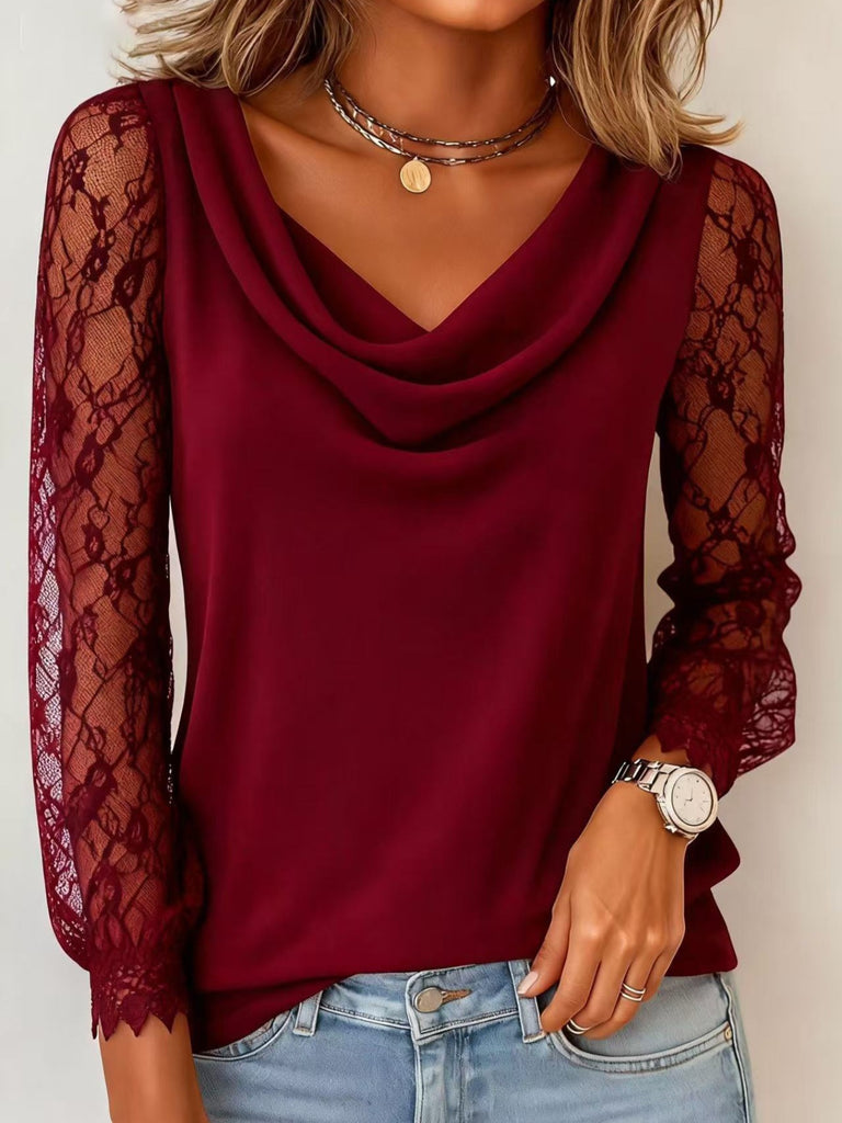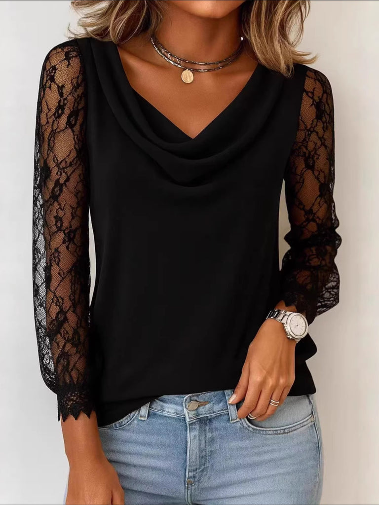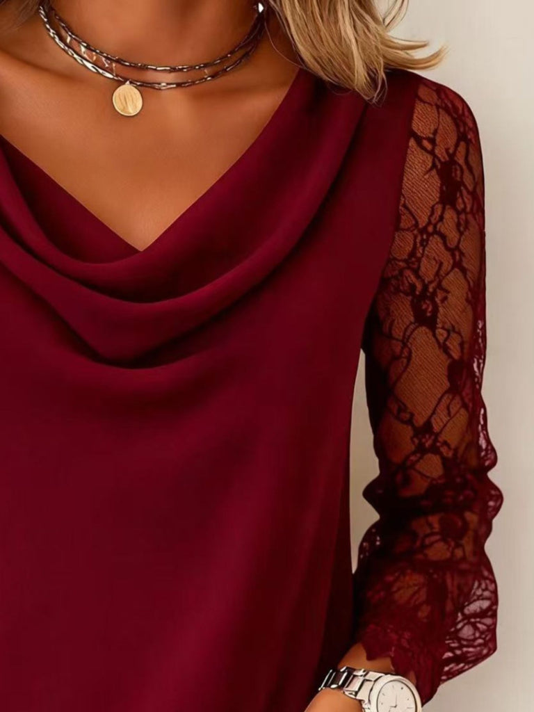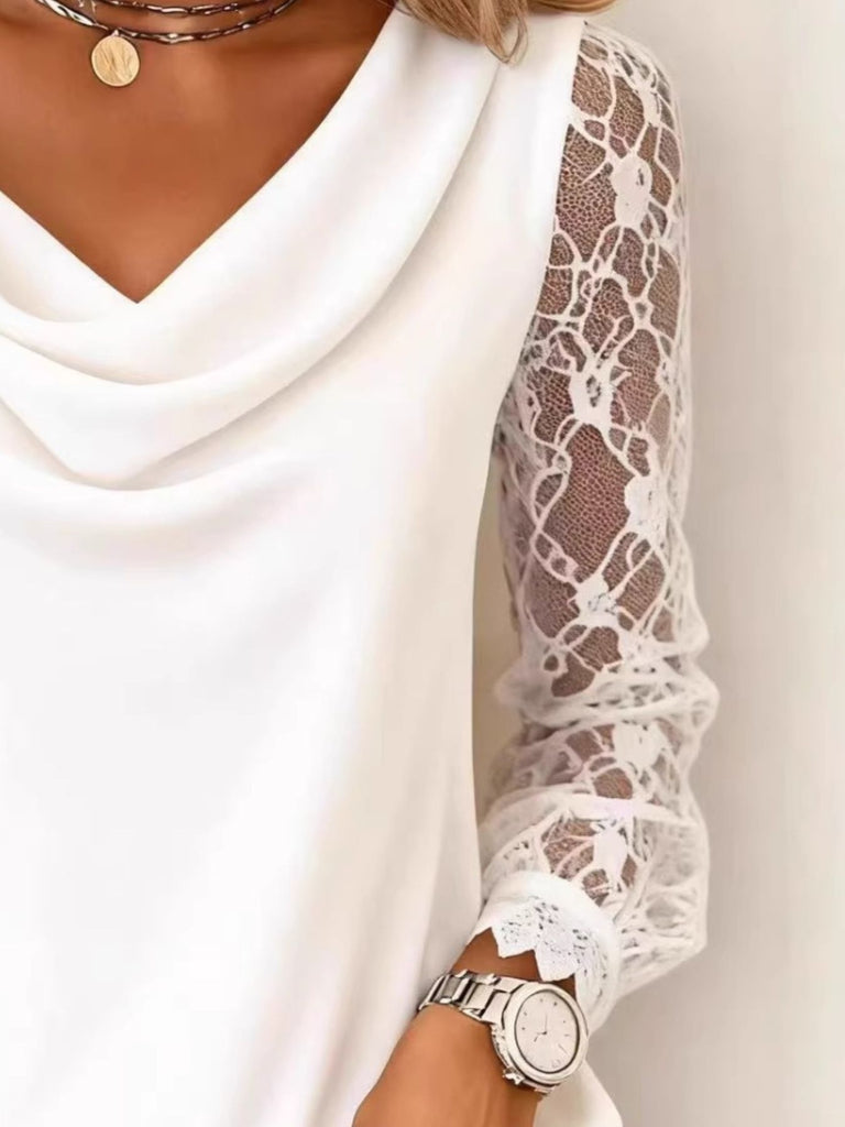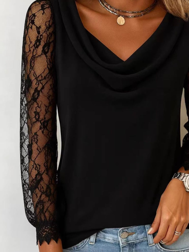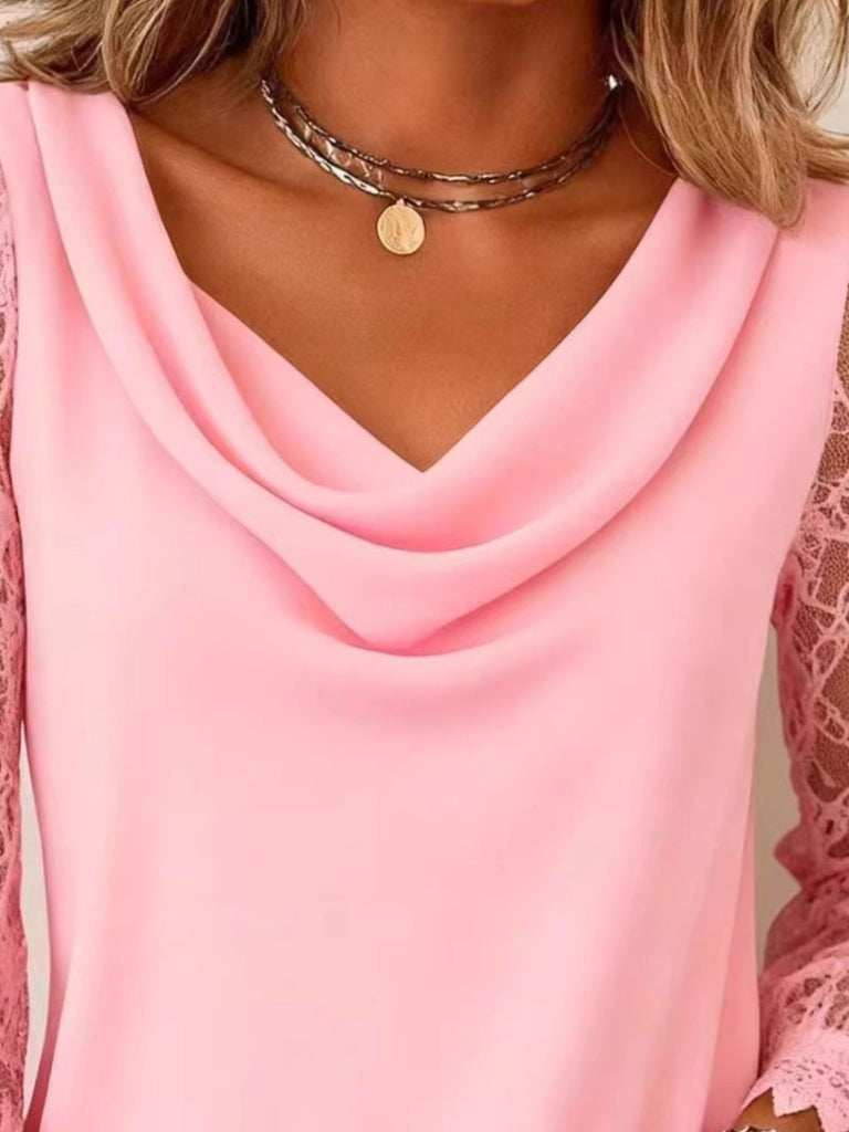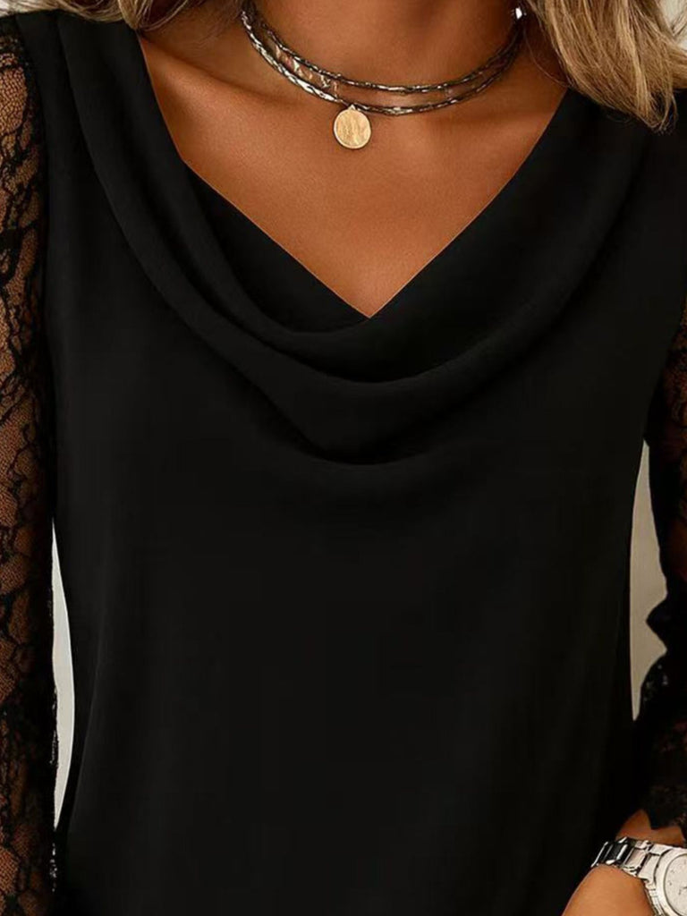 Lace Sleeve Cowl Neck Blouse