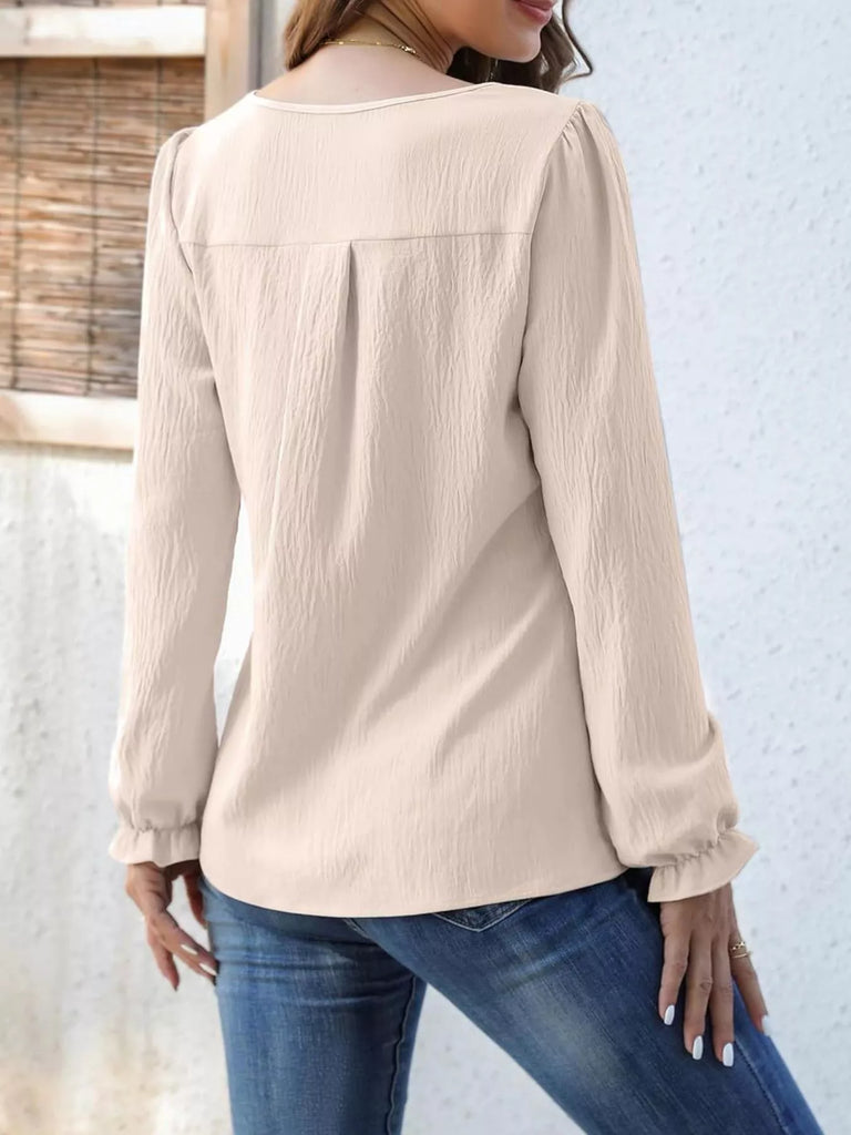 Notched Ruffle Cuff Blouse