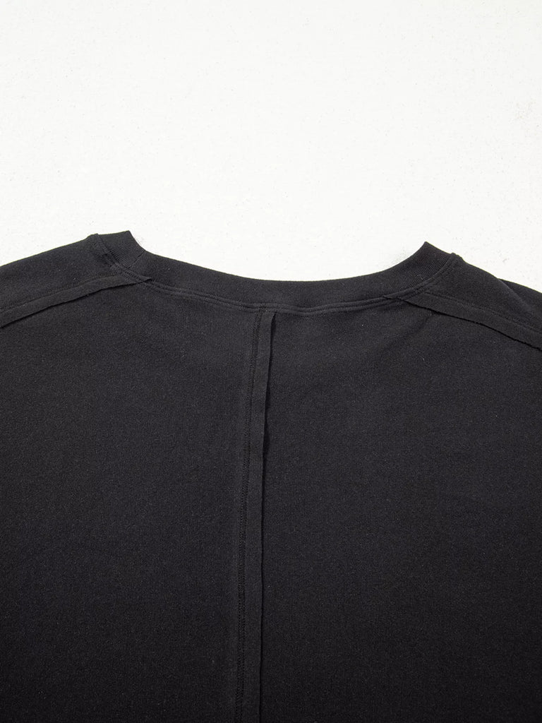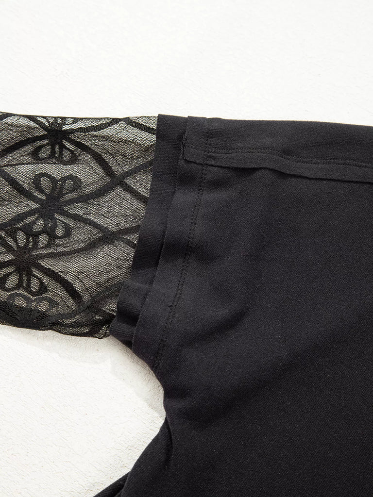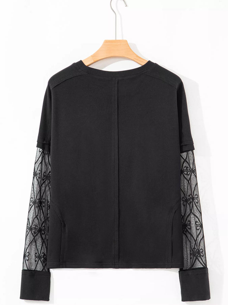 Solid Color Bow Textured Patchwork Long Sleeve Top