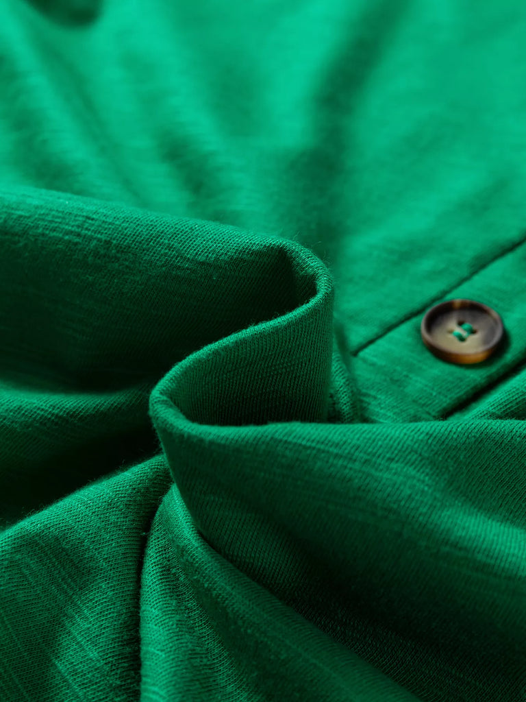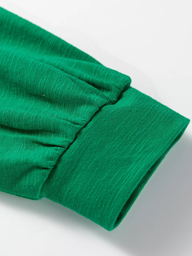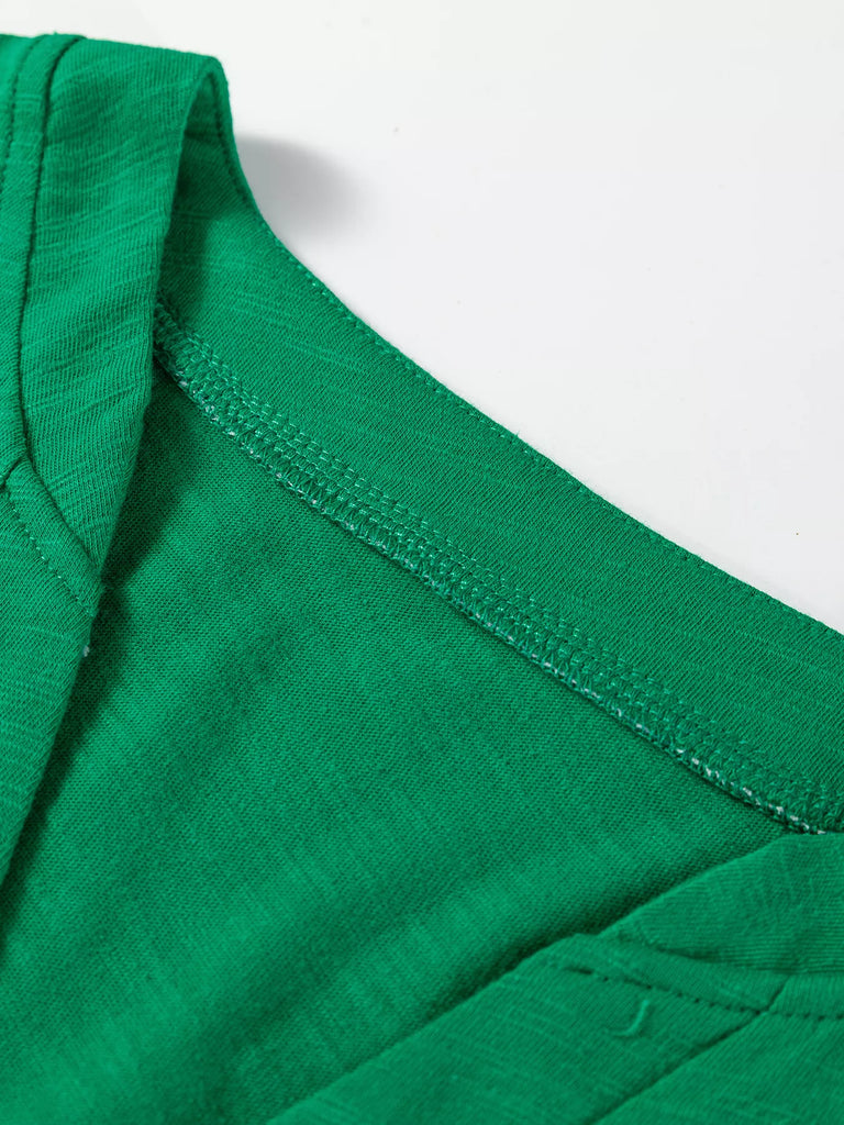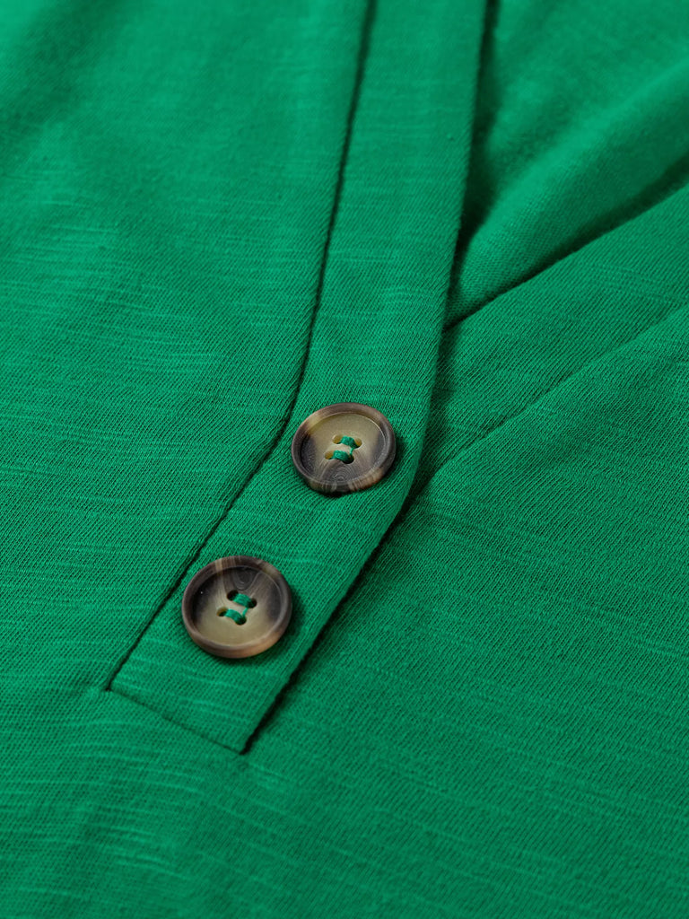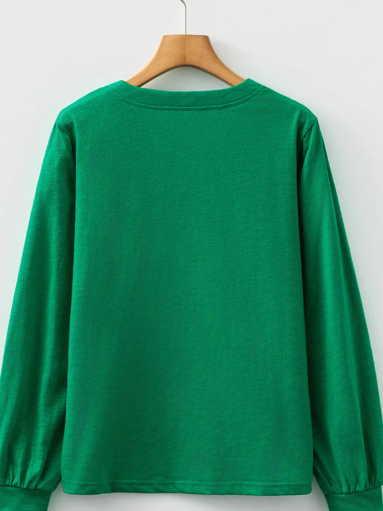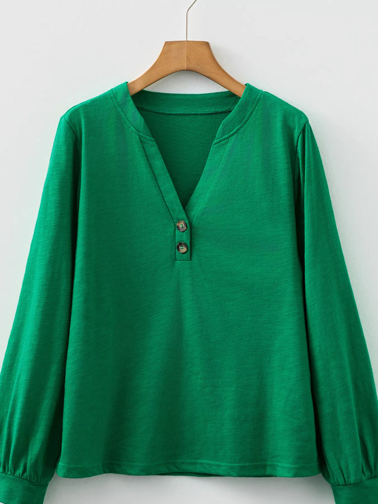 Solid Color Button V Neck Long Sleeve Top