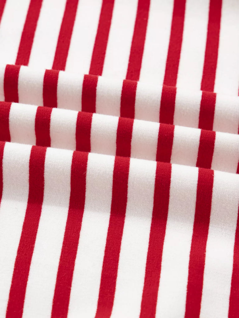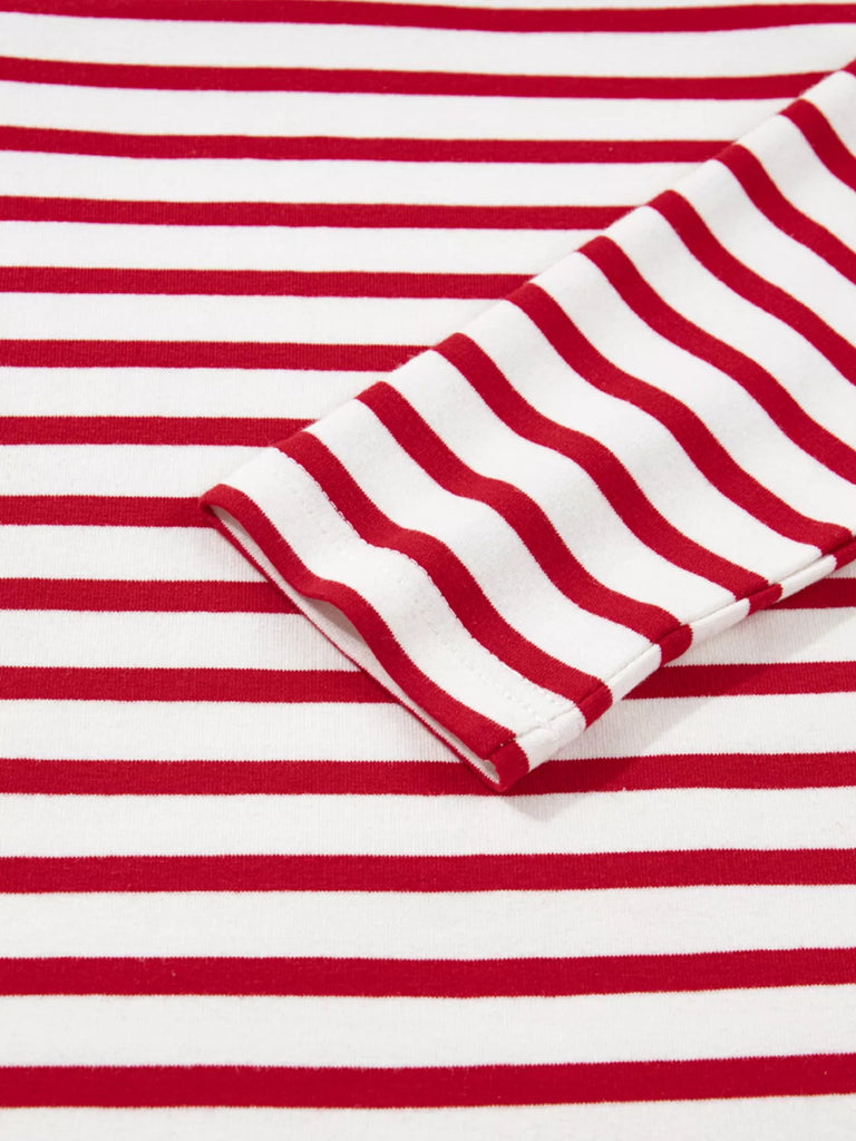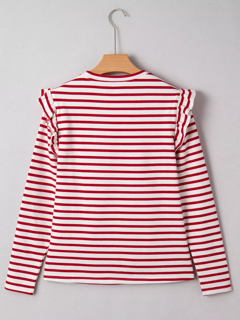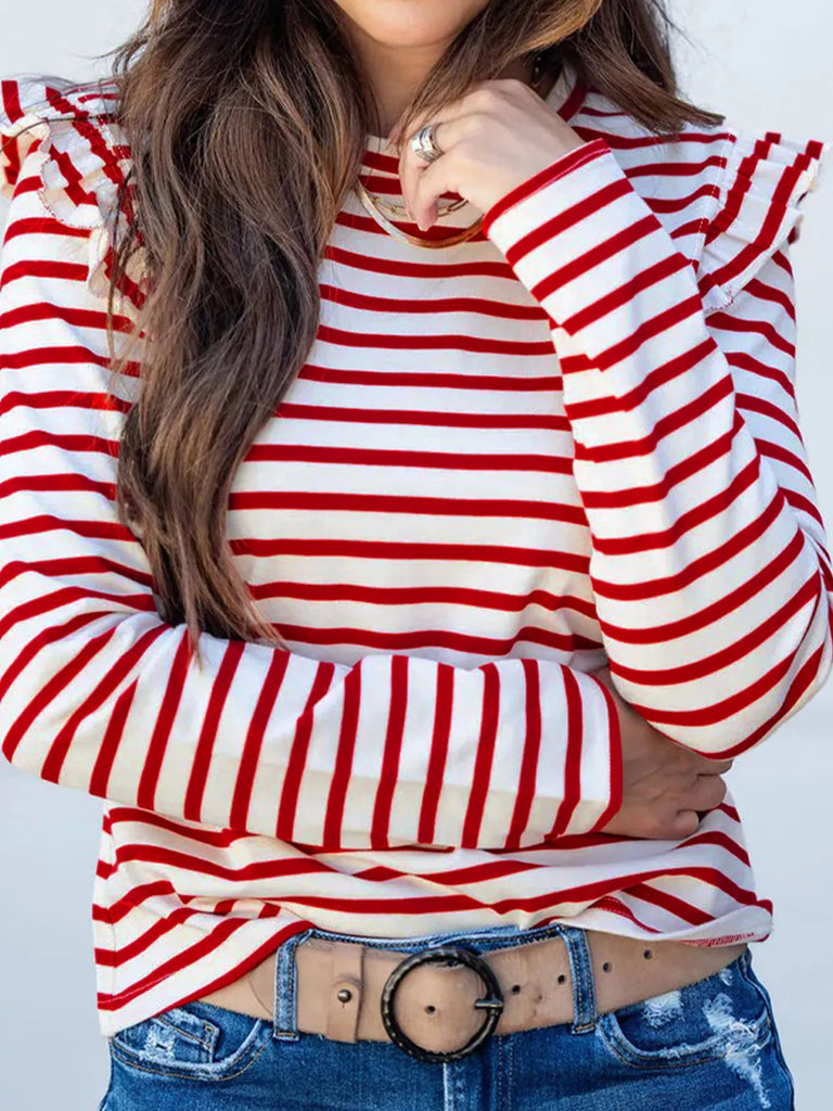 Stripe Round Neck Ruffle Trim Long Sleeve Top