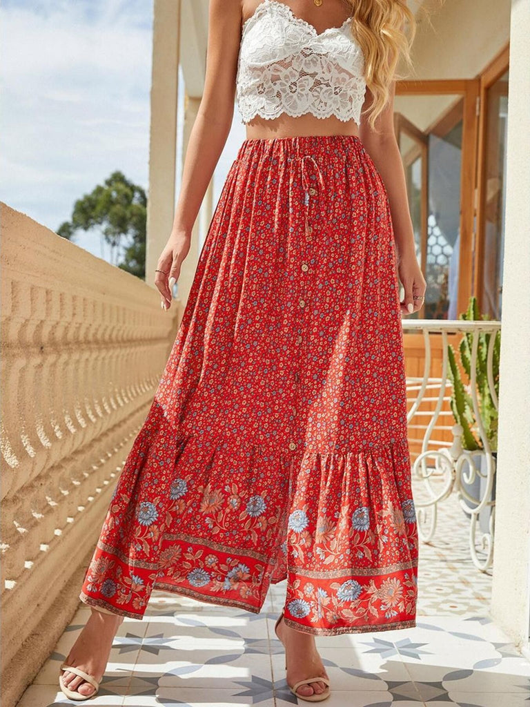 Floral Print Slit Skirt