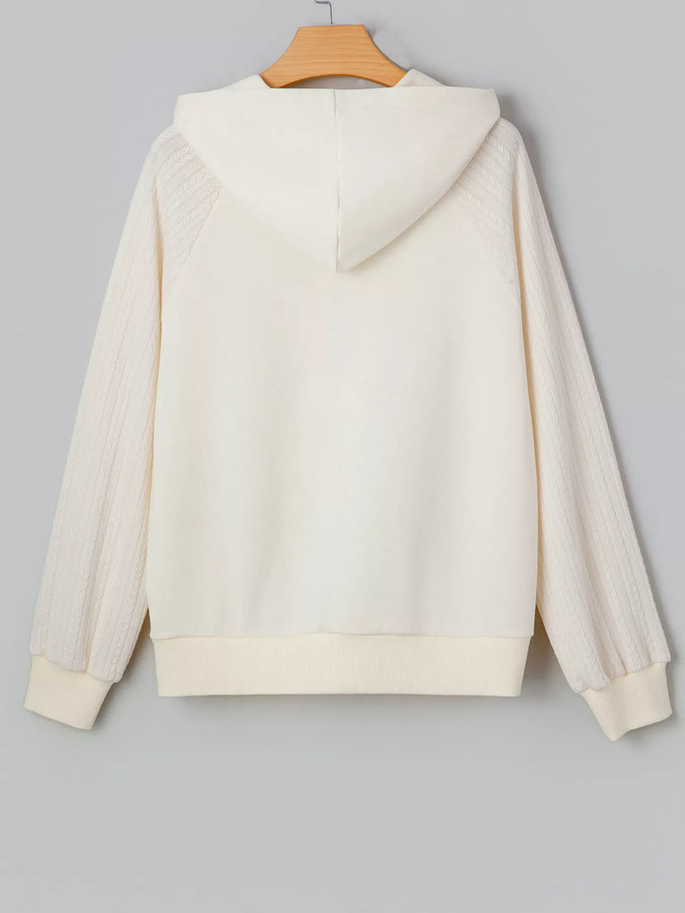 Solid Color Textured Sleeve Patchwork Half Zip Hoodie