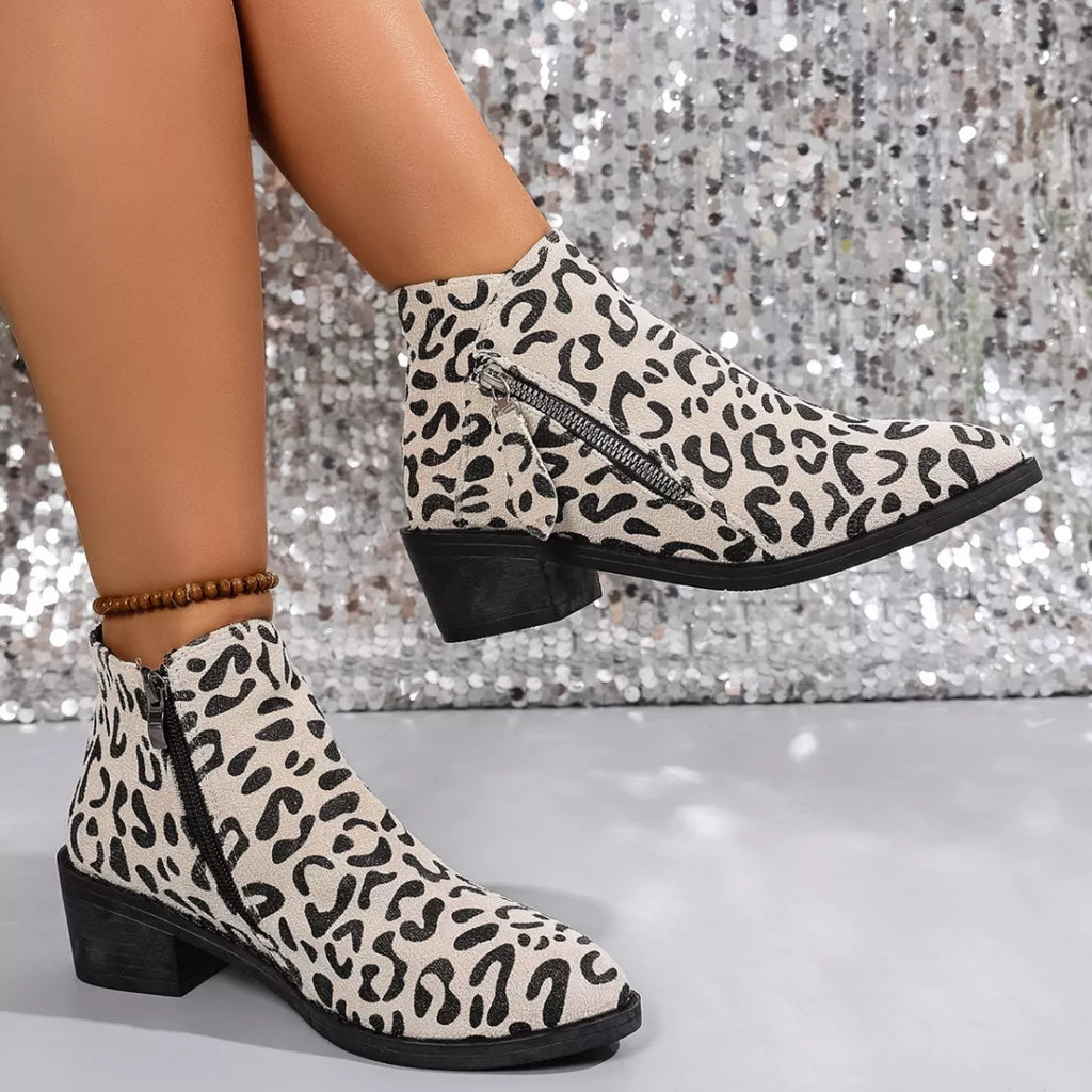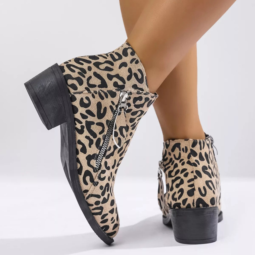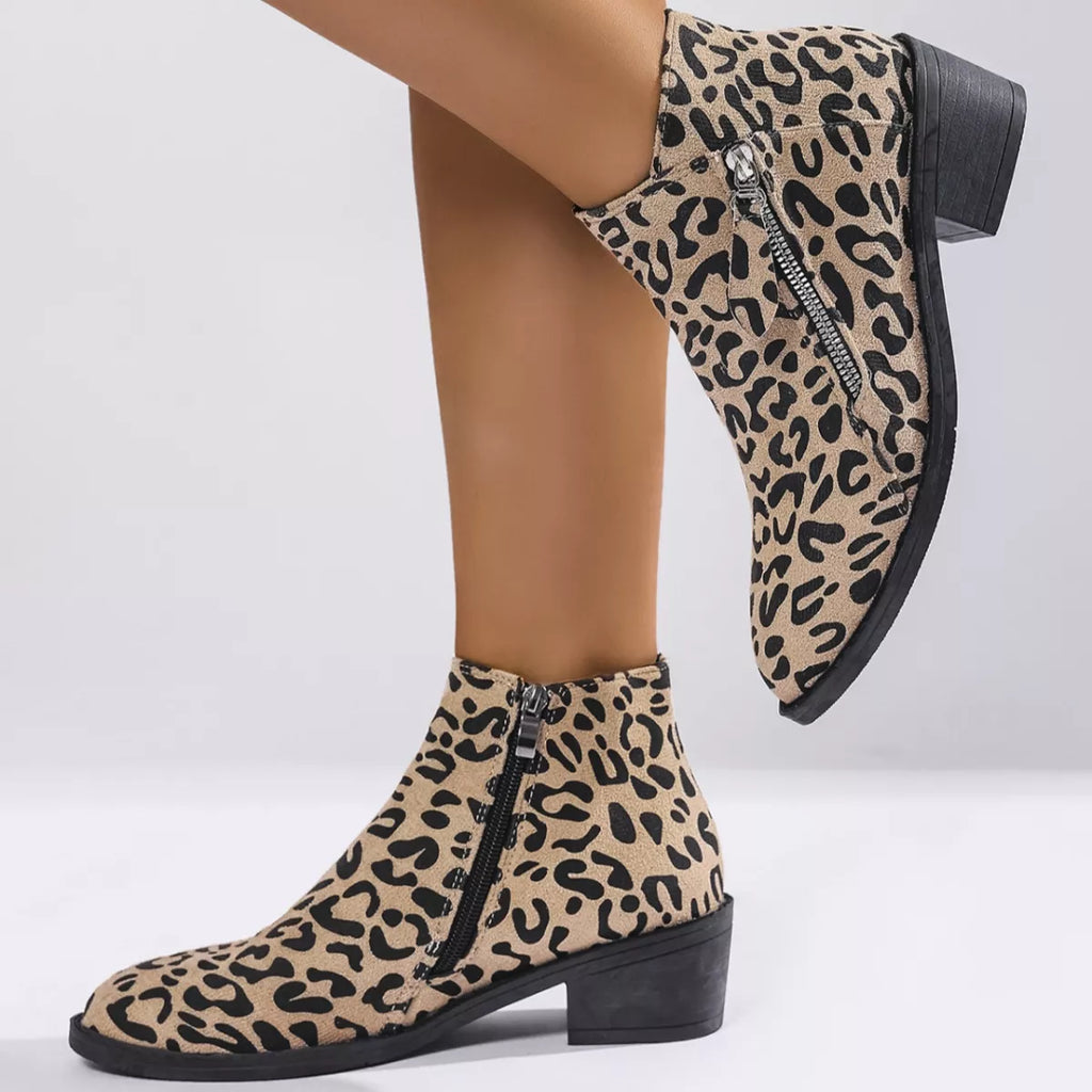 Leopard Block Heel Ankle Boots