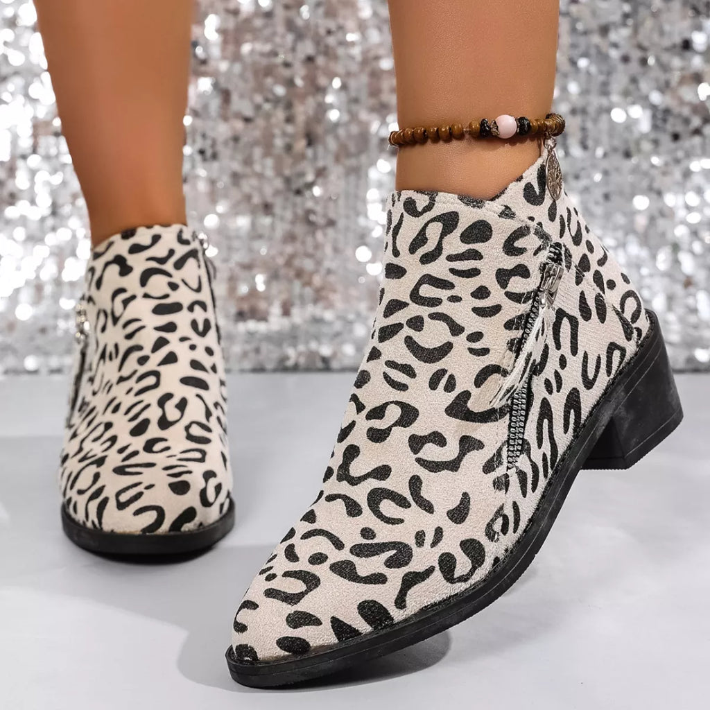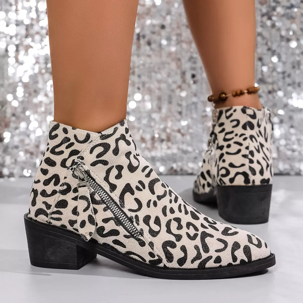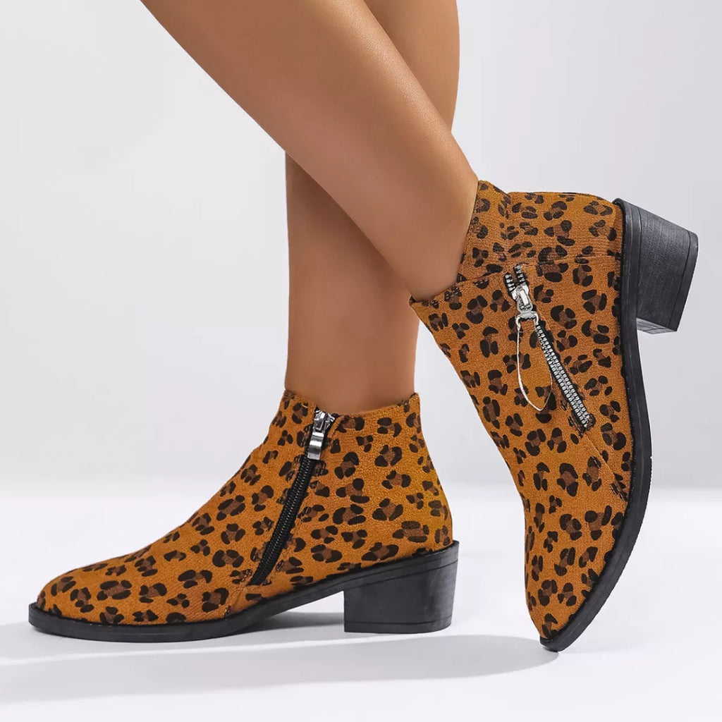 Leopard Block Heel Ankle Boots