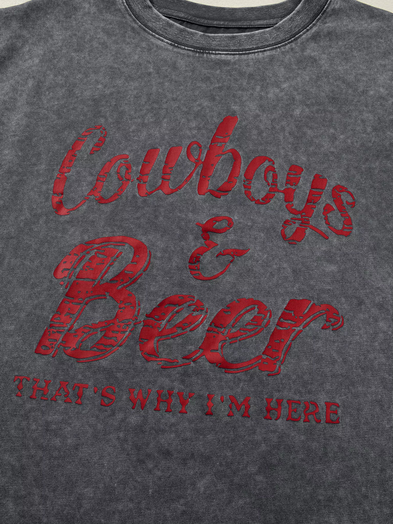 Cowboy & Beer Western Graphic Mineral Wash Tank Top