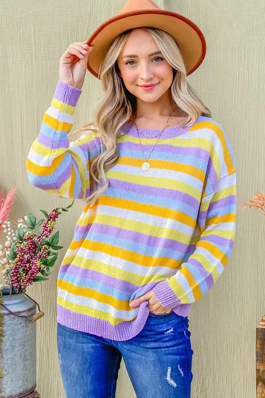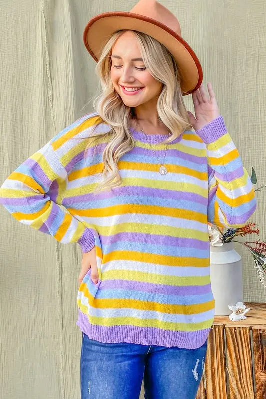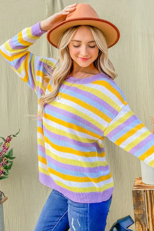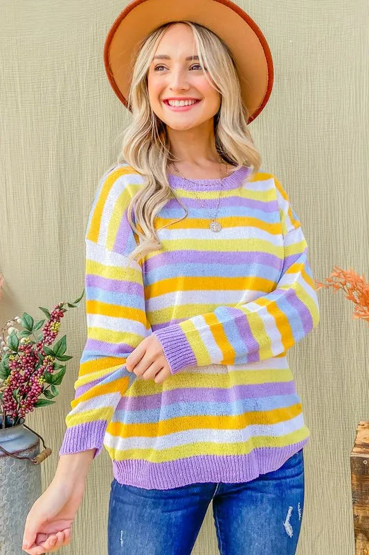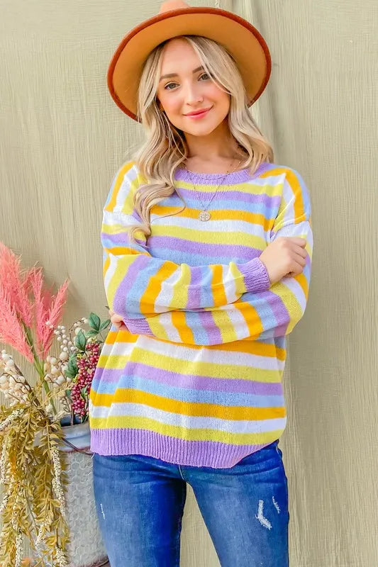 Multi Striped Mesh Pullover Spring Sweater