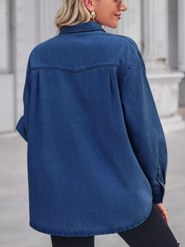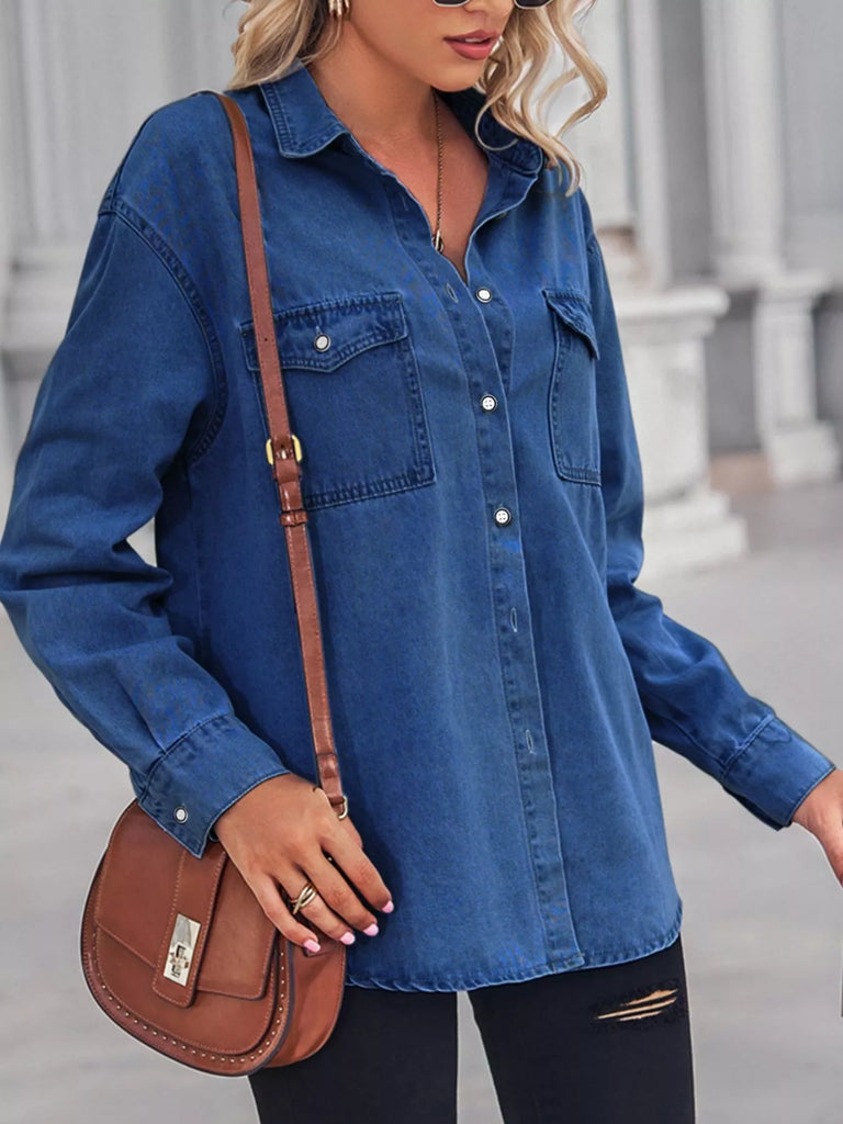 Button Down Washed Denim Shirt with Chest Pockets
