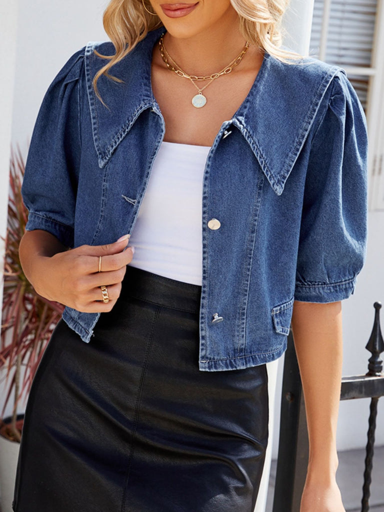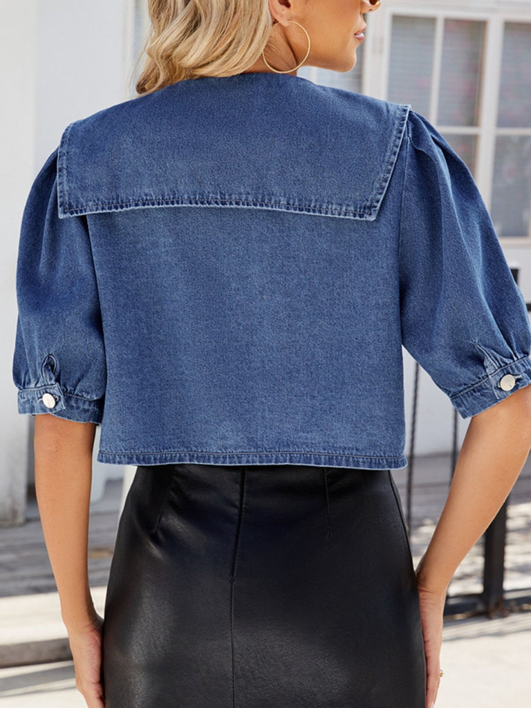 Button Up Puff Sleeve Denim Top