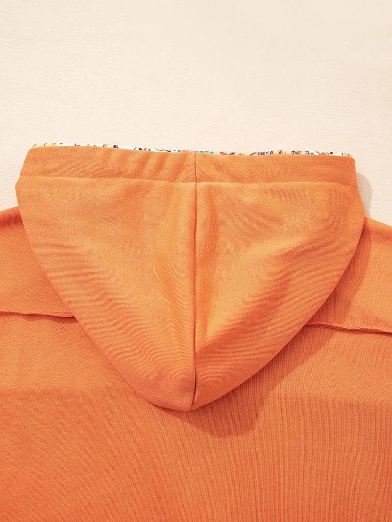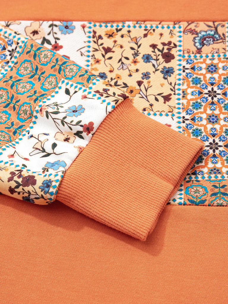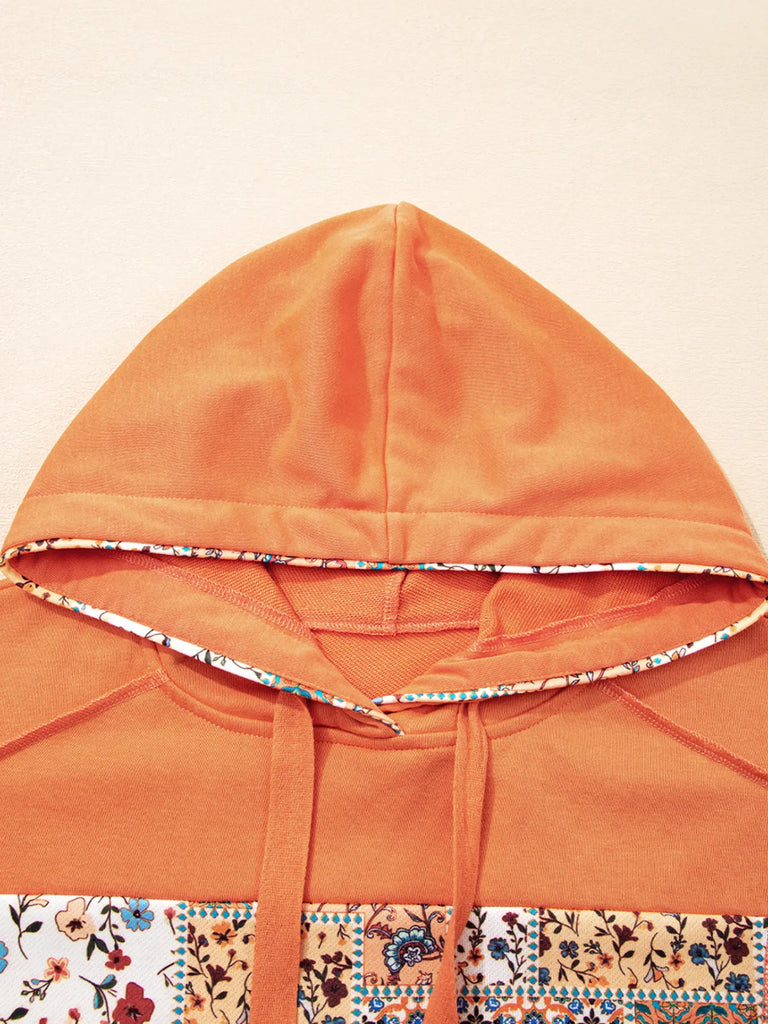 Floral Patchwork Hoodie with Drawstring