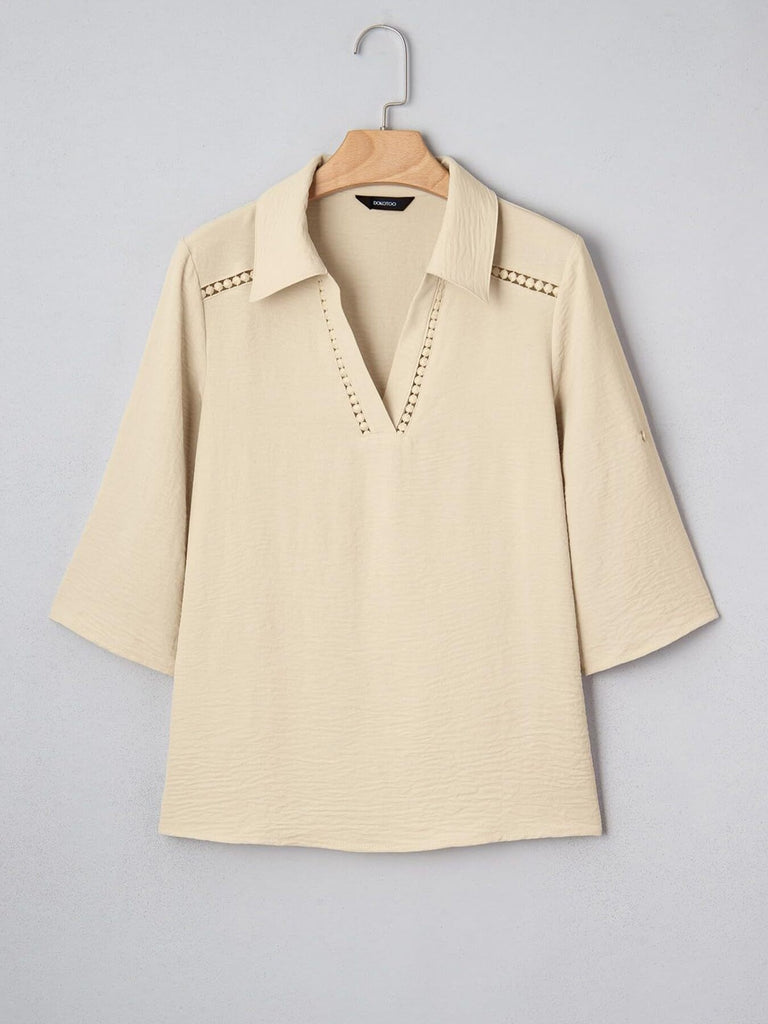 Johnny Collar Texture Blouse