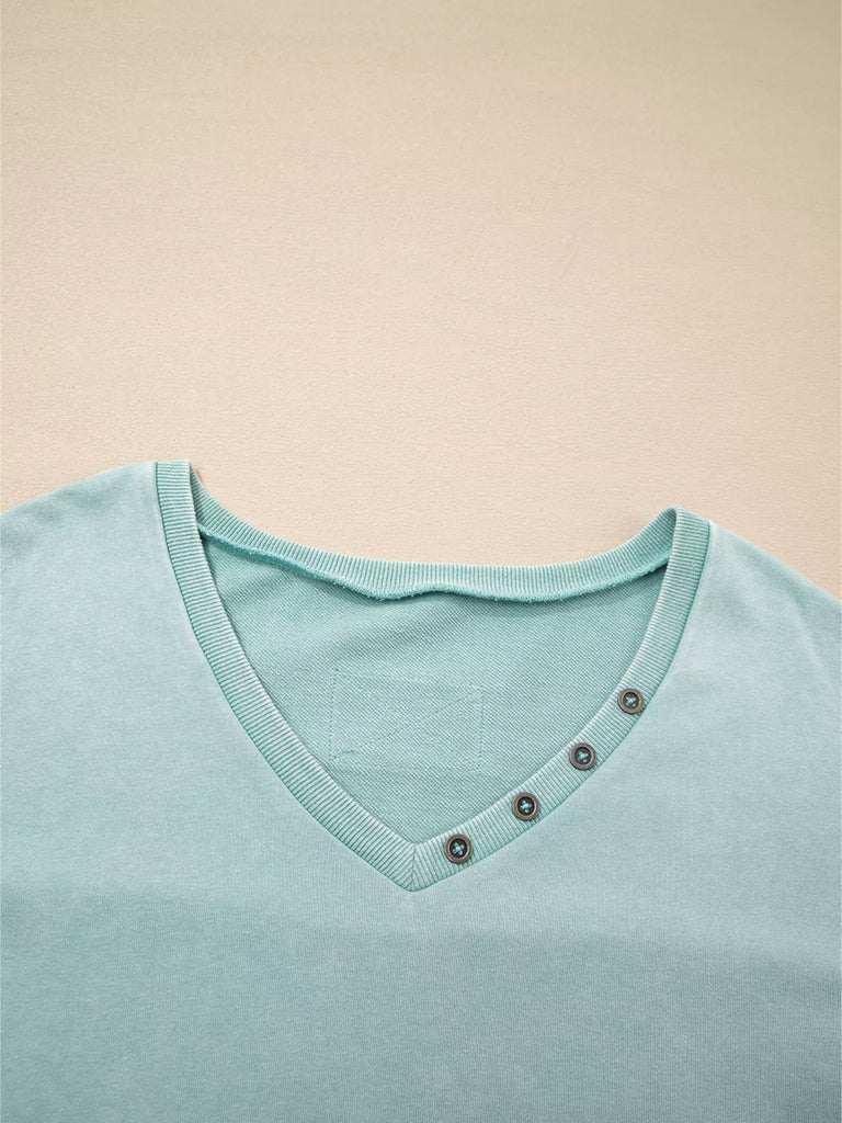 Mineral Wash Exposed Seam Buttoned V Neck Top
