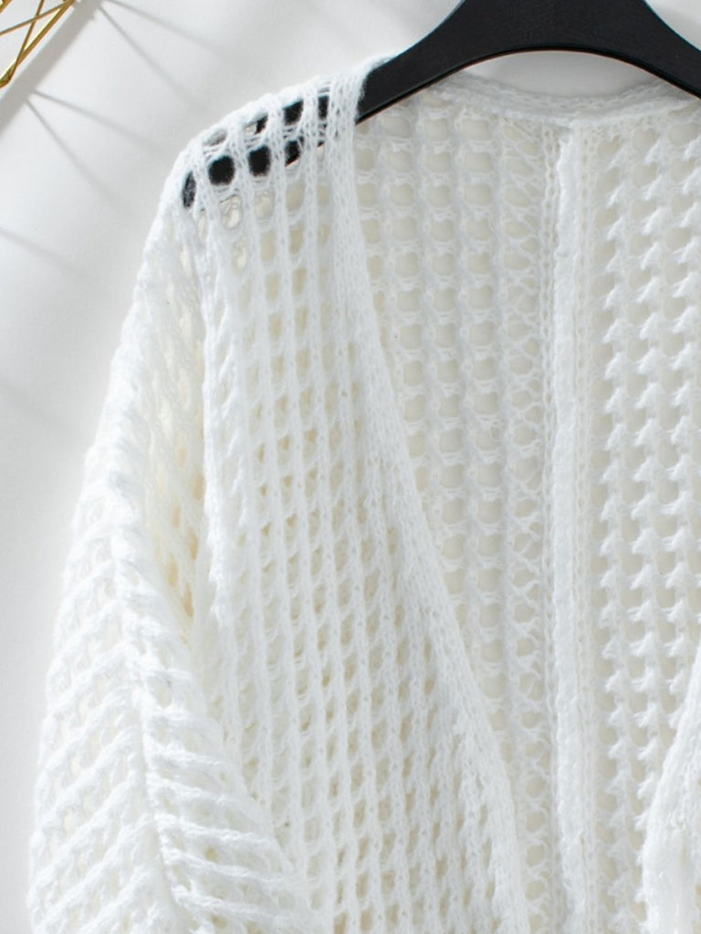 Openwork Open Front Long Sleeve Cardigan
