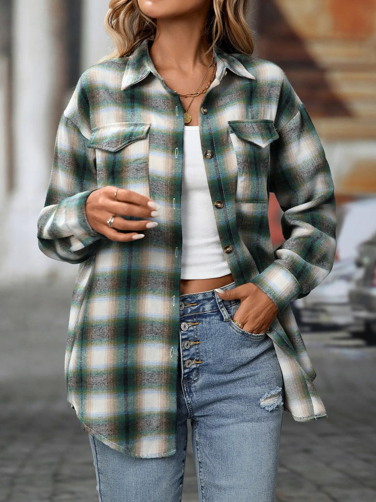 Oversized Plaid Button-Up Shirt