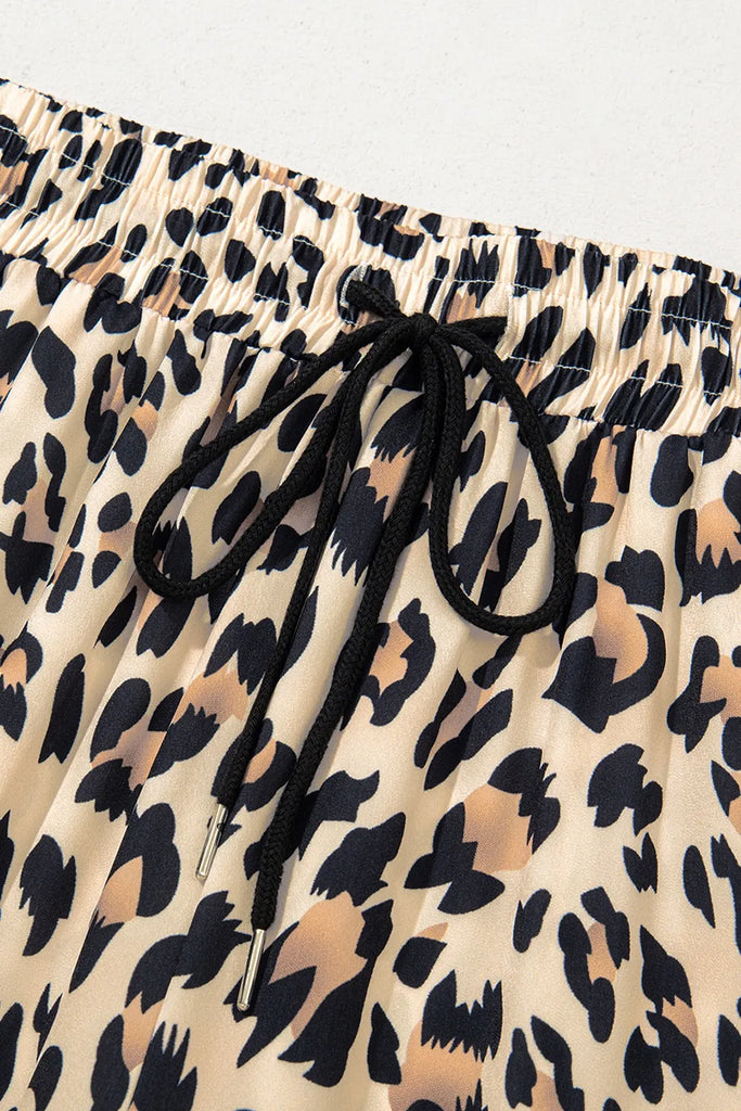 Parchment Leopard Drawstring Flowy Wide Leg Pants